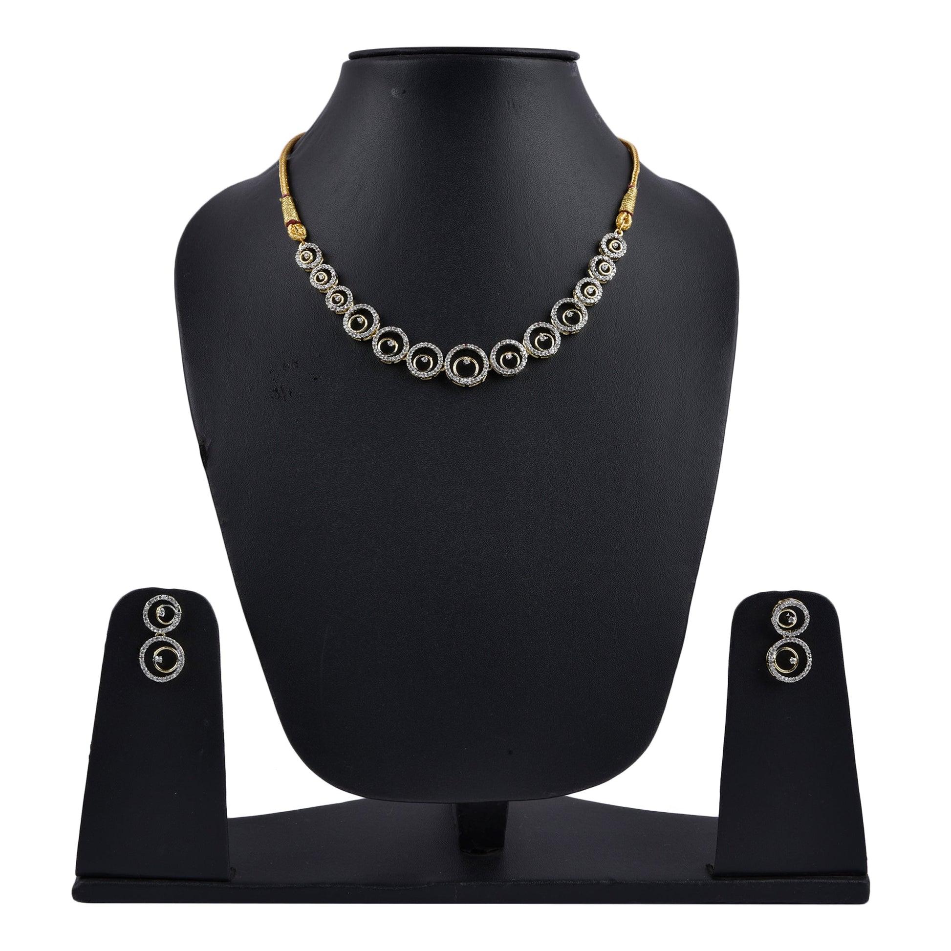 Rhodium-Plated Alloy American Diamond Circle Style Necklace With Earring Ring And Bracelet Set - The Pari