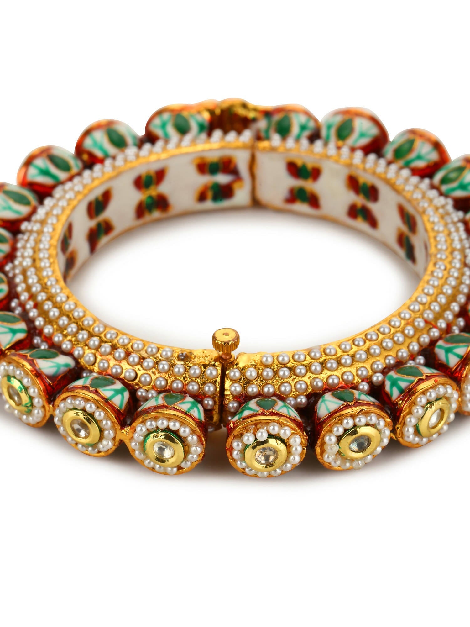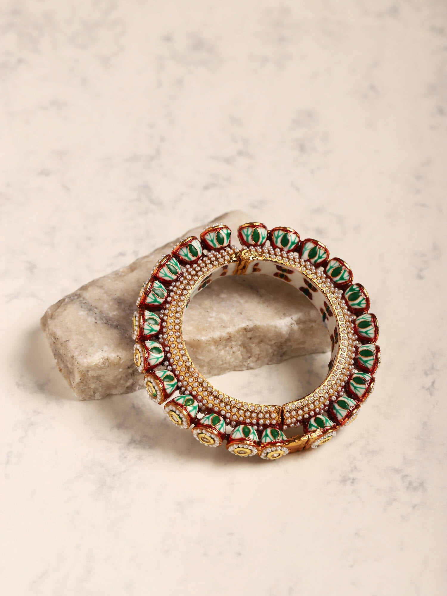 Gold-Plated Green Kundan-Studded Bangle - Ruby Raang - Grab2buy