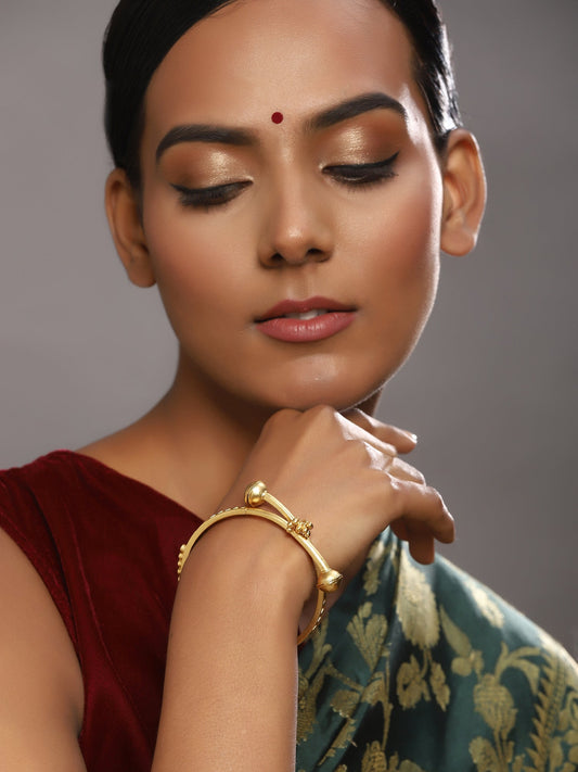 Gold-Plated White Red Stone Studded Beaded Bangle - Ruby Raang - Grab2buy