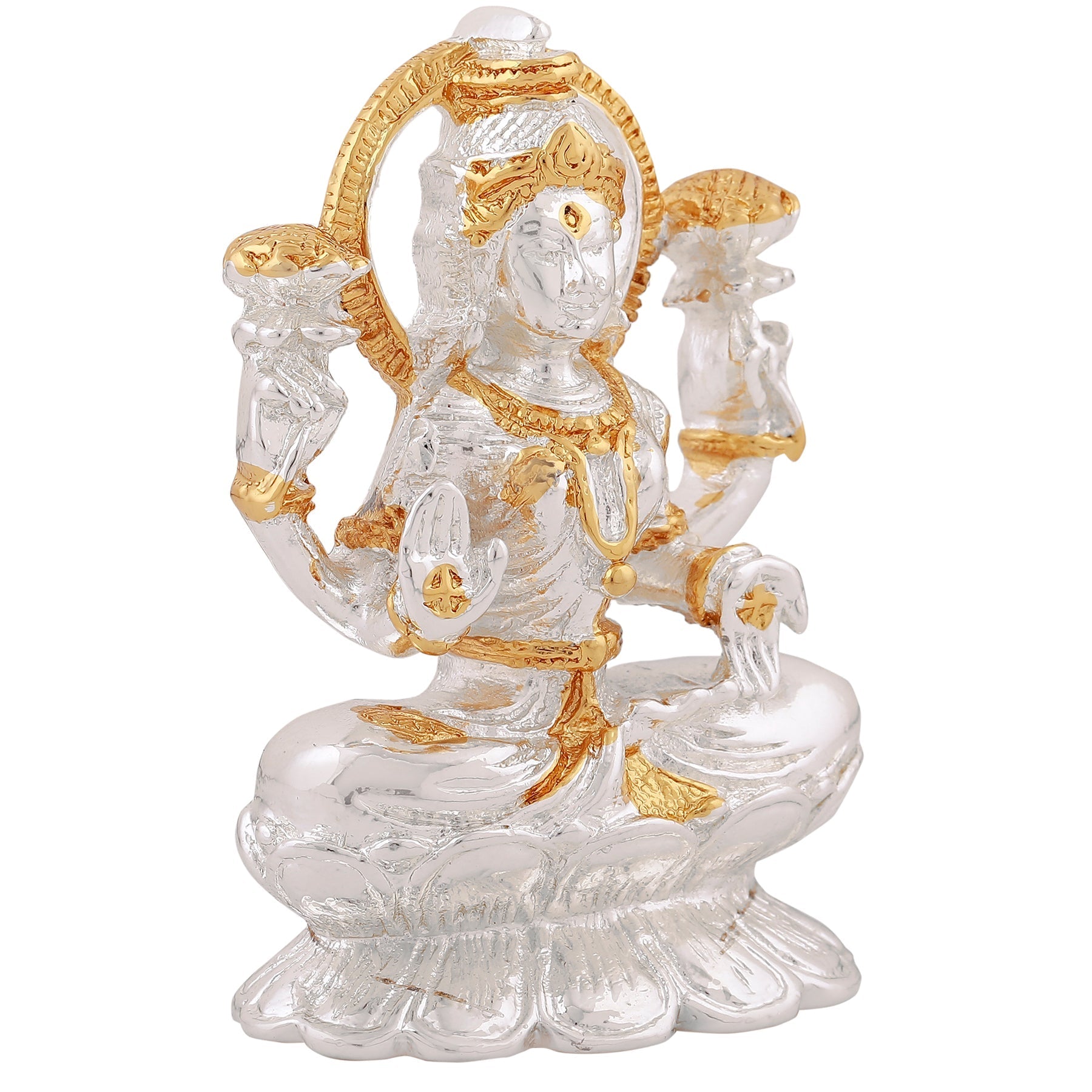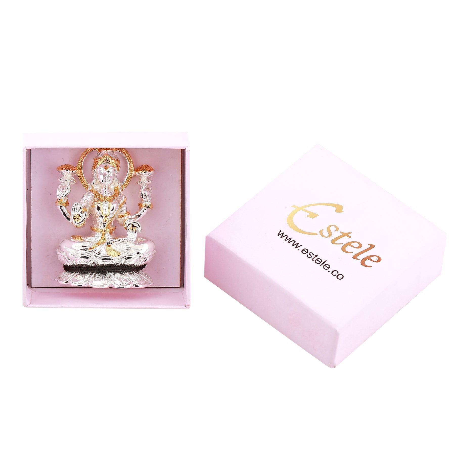 Estele Gold & Rhodium goddess of wealth Laxmi Devi Idol on lotus for Pooja/Car decor