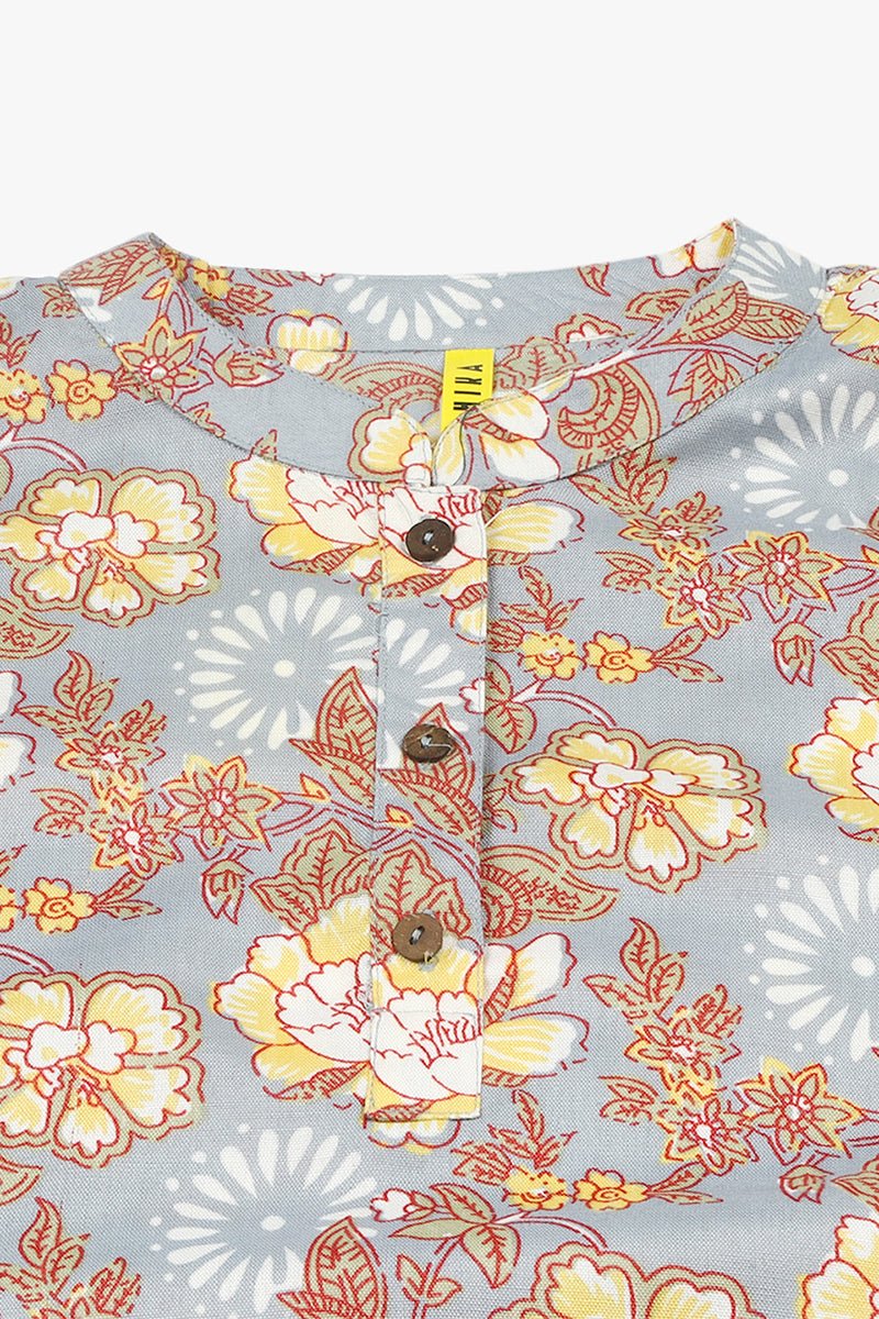 Ahika Grey Floral Cotton Blend Printed Straight Tunic