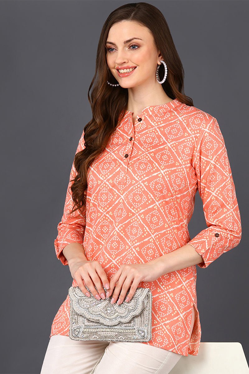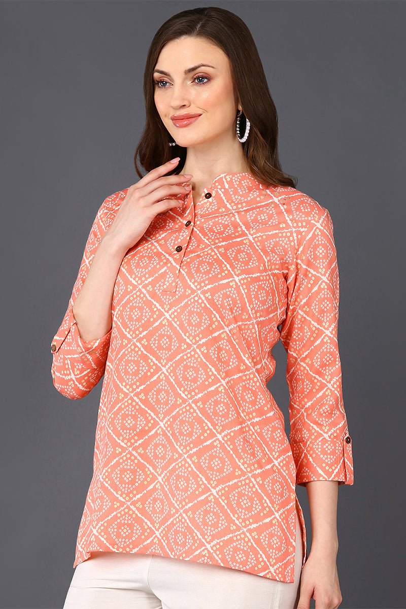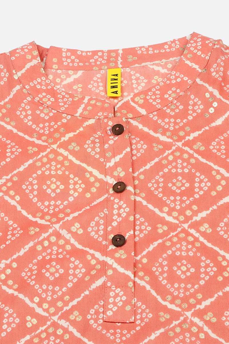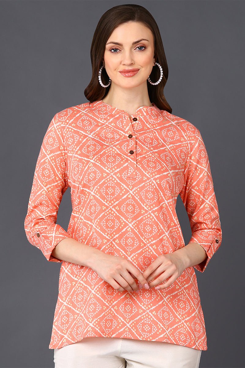 Ahika Peach Cotton Blend Bandhani Printed Straight Tunic