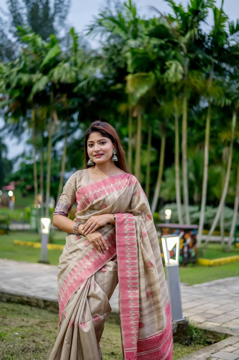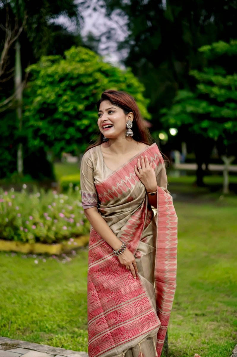 Aastha Fashion Red Thread Woven Handloom Tussar Silk Saree with Blouse