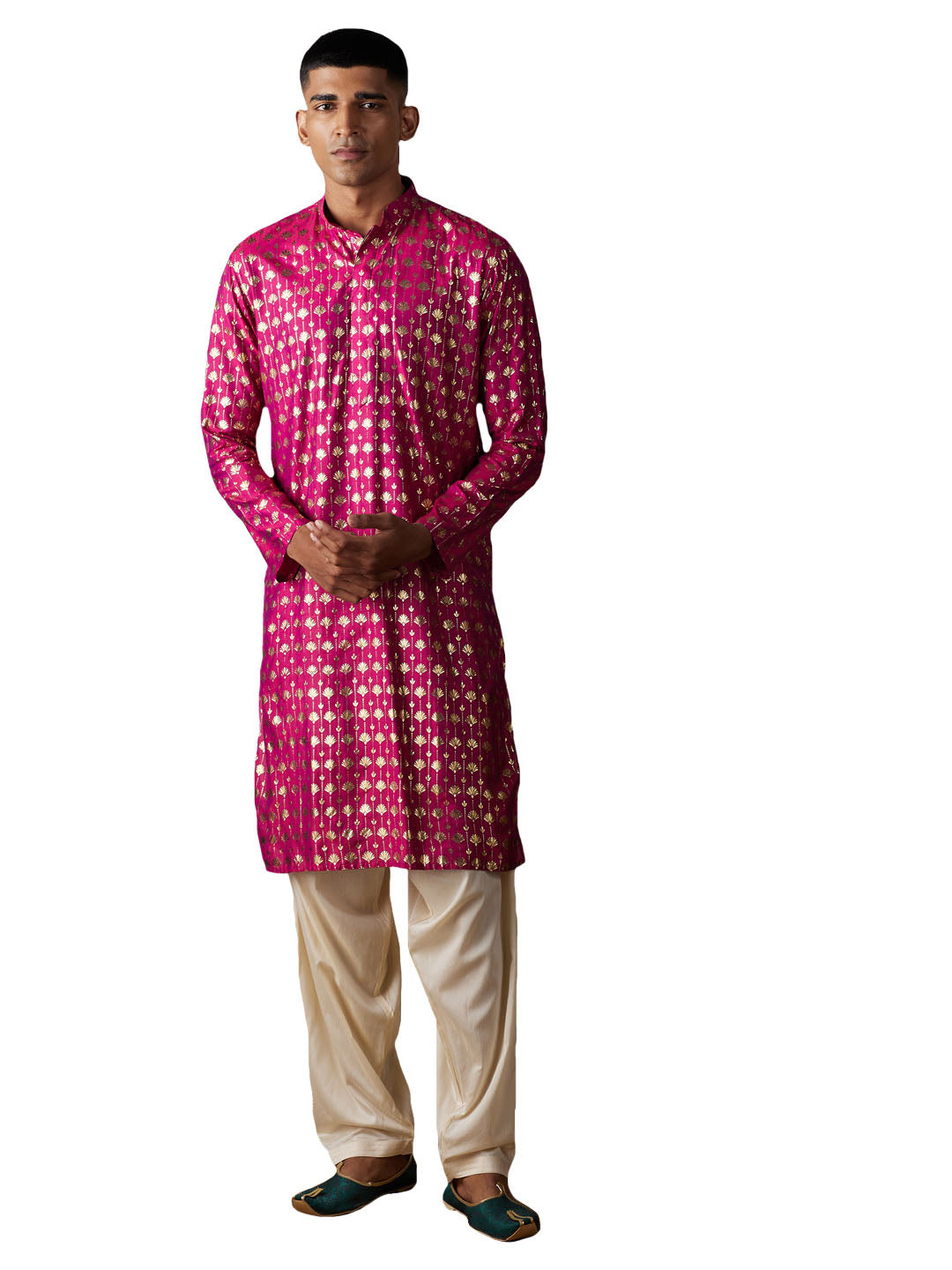 Vastramay Men's Pink And Cream Viscose Kurta And Patiala Set