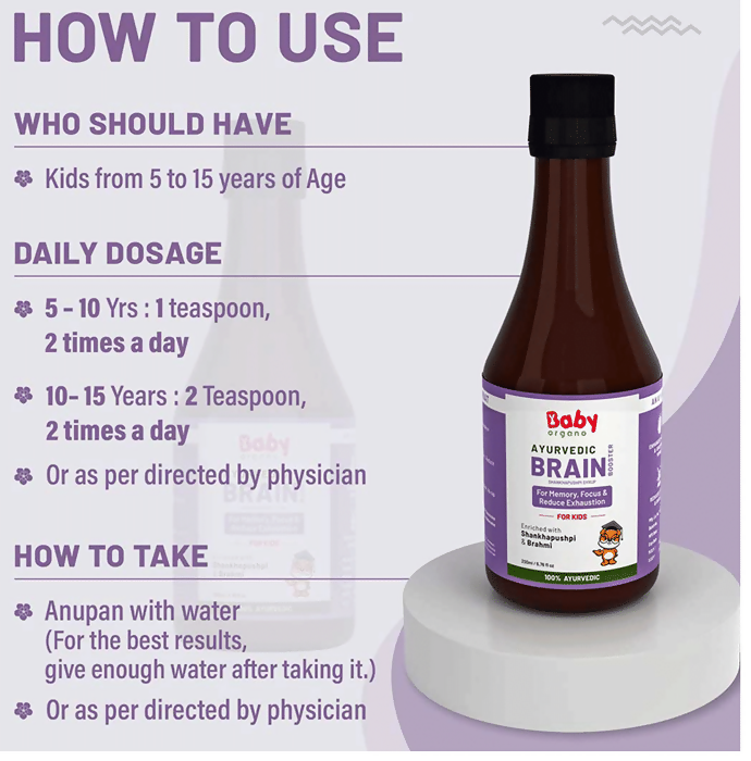 Baby Organo Brain Booster Shankhpushpi Syrup is an Ayurvedic preparation formulated using plant-based ingredients traditionally known in Ayurvedic practices. This syrup is crafted as a part of general wellness routines for children and contains a combination of herbs and naturally derived components.