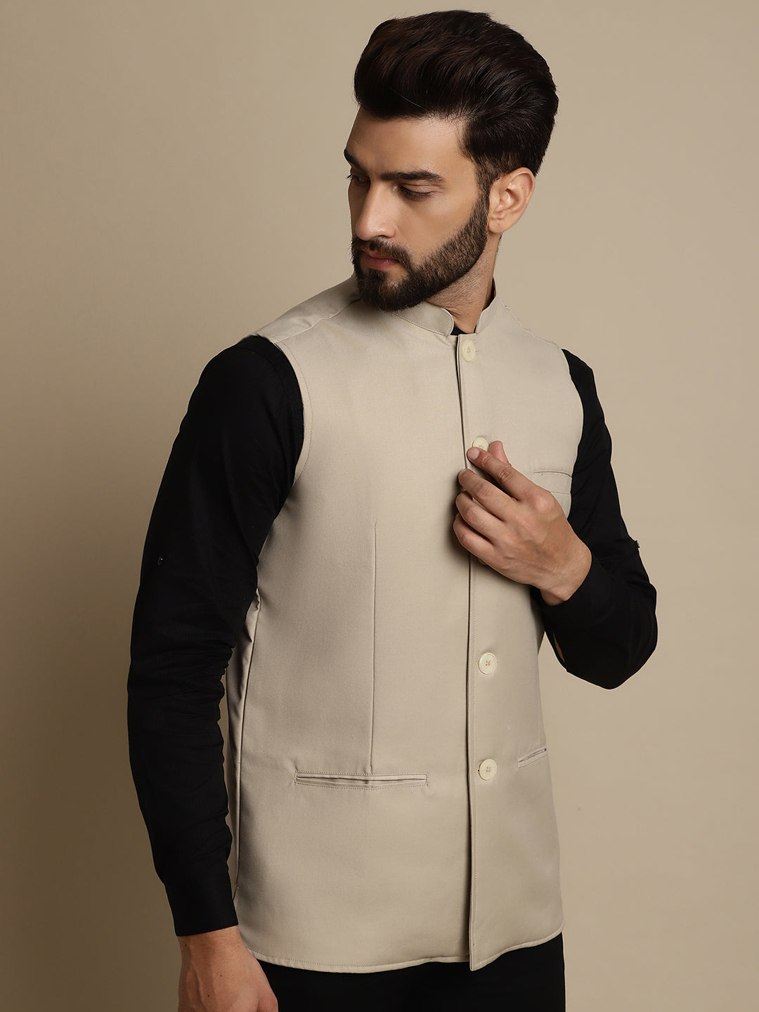 Even Apparels Men's Cream Mandarin Collar Waistcoat - Grab2buy