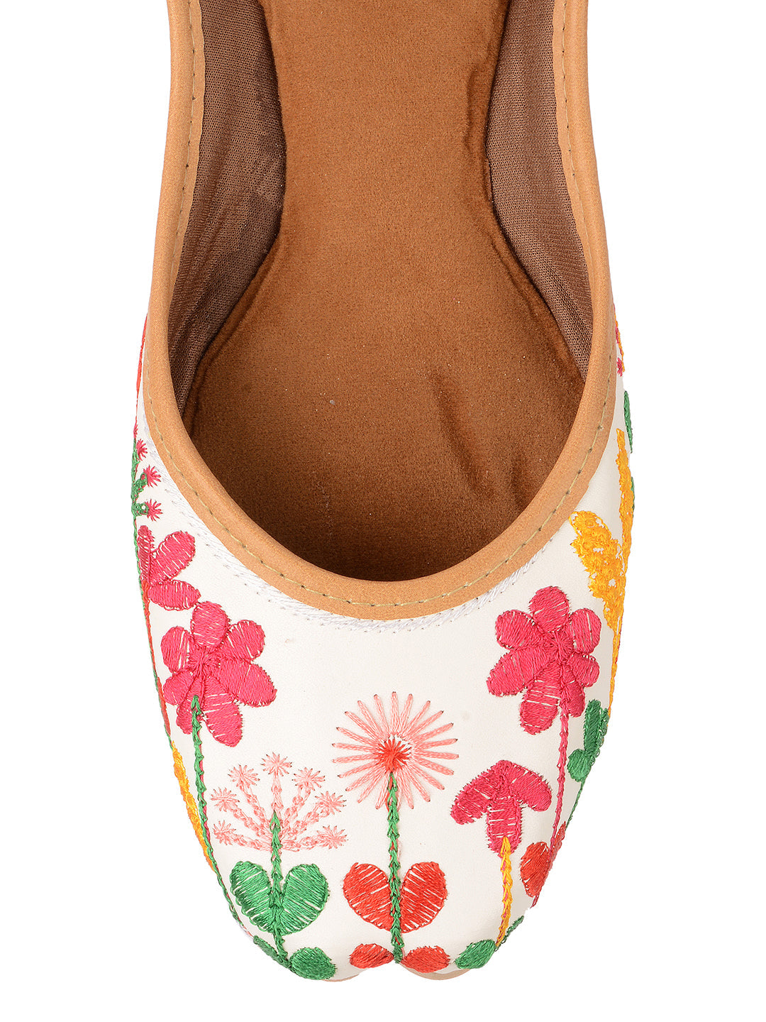 Desi Colour Women Indian Ethnic Footwear-Embellished White Forest Mojari