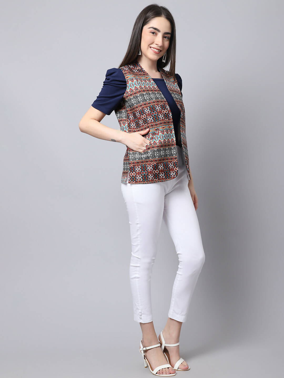 Even Apparels Brown 100% Polyester Open Front Women's Waistcoat