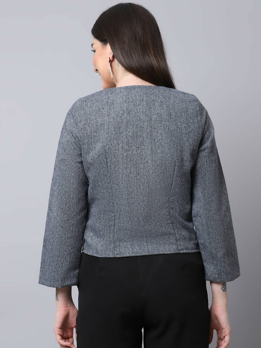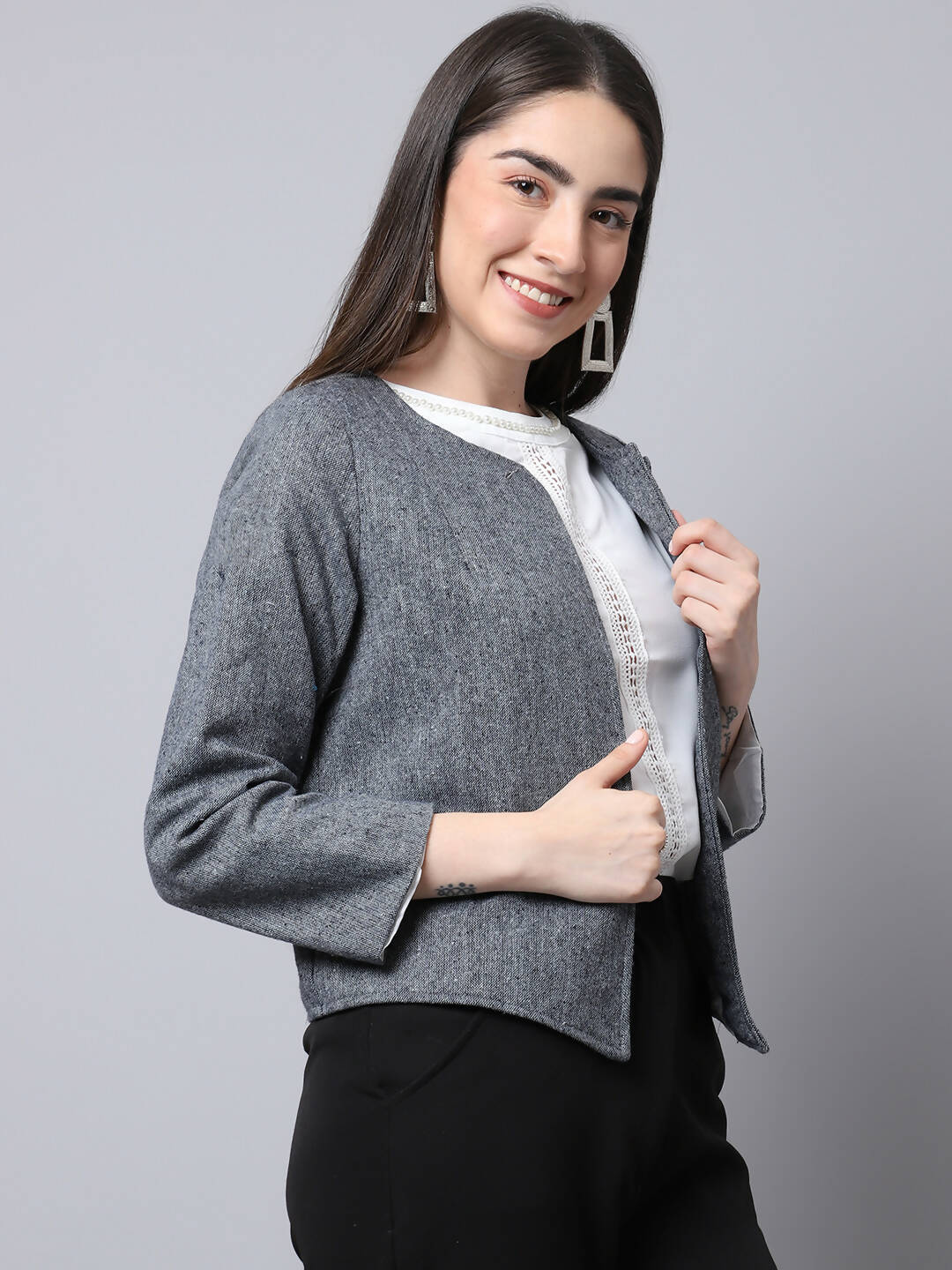 Even Apparels Grey Pure Wool Open Front Statement Jacket