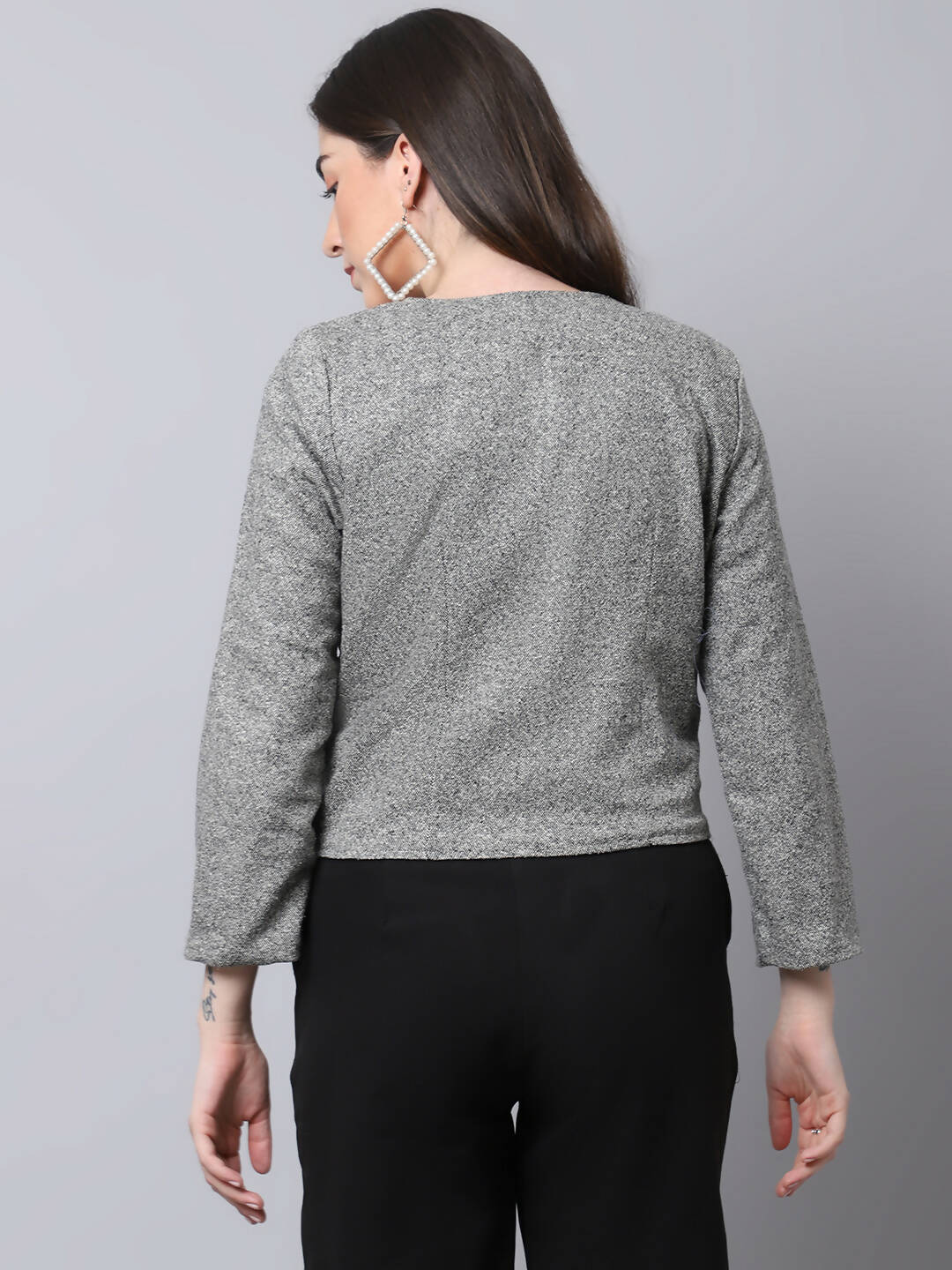 Even Apparels Grey Pure Wool Open Front Statement Women's Jacket