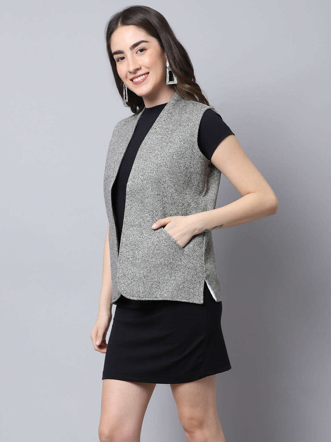 Even Apparels Grey Pure Wool Open Front Women's Waistcoat