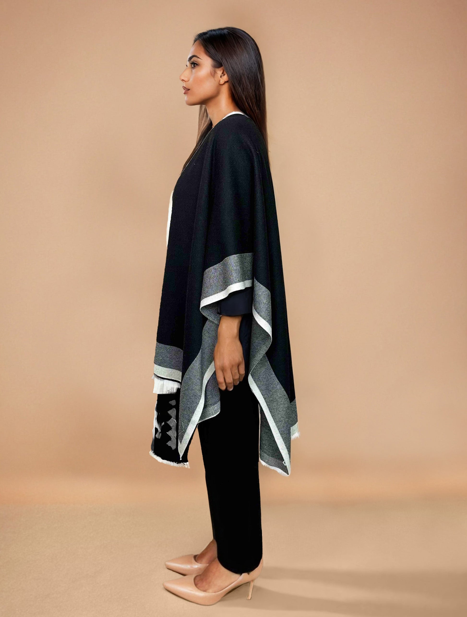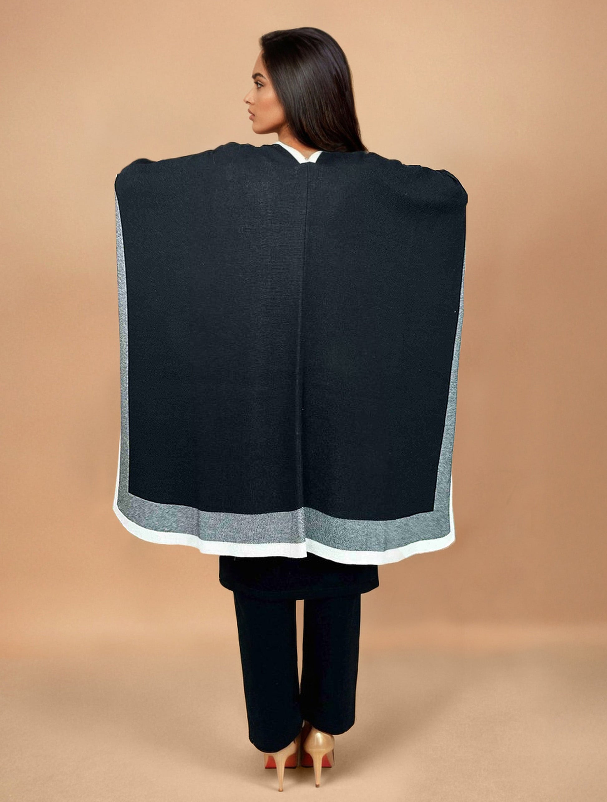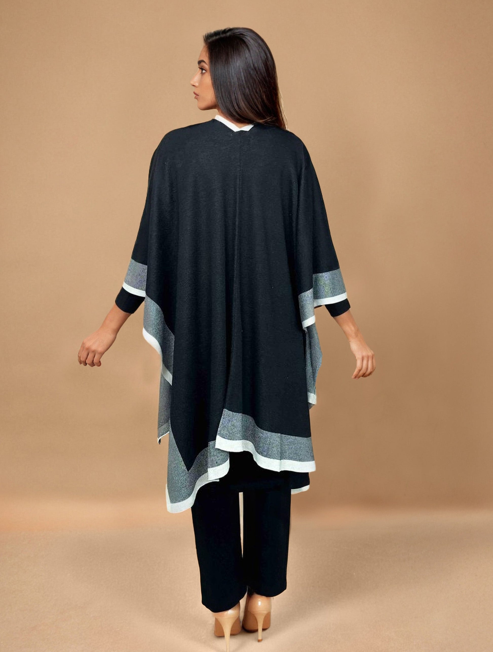 • Elevate your style with this black woollen kaftan cape, it's an ideal blend of elegance and comfort.