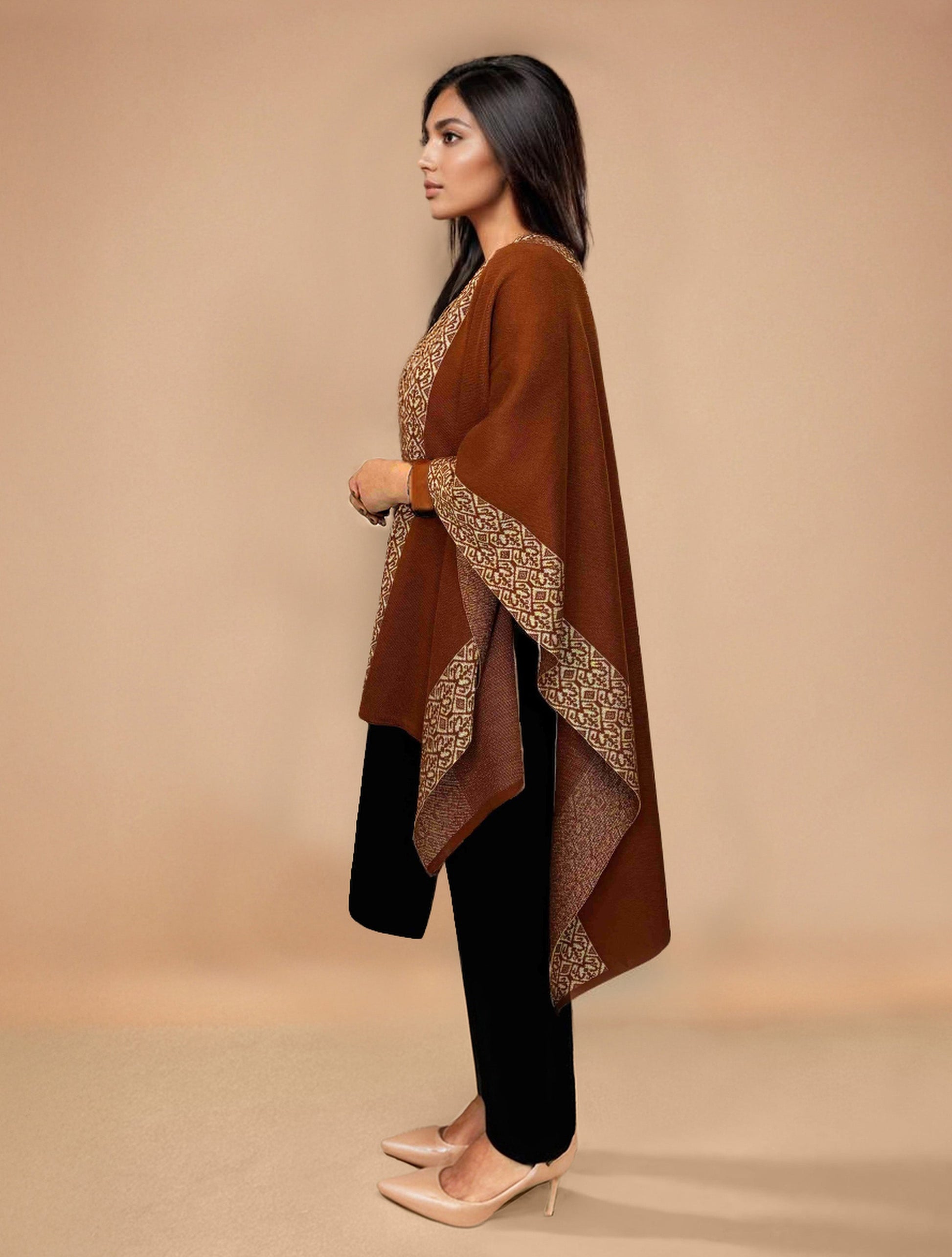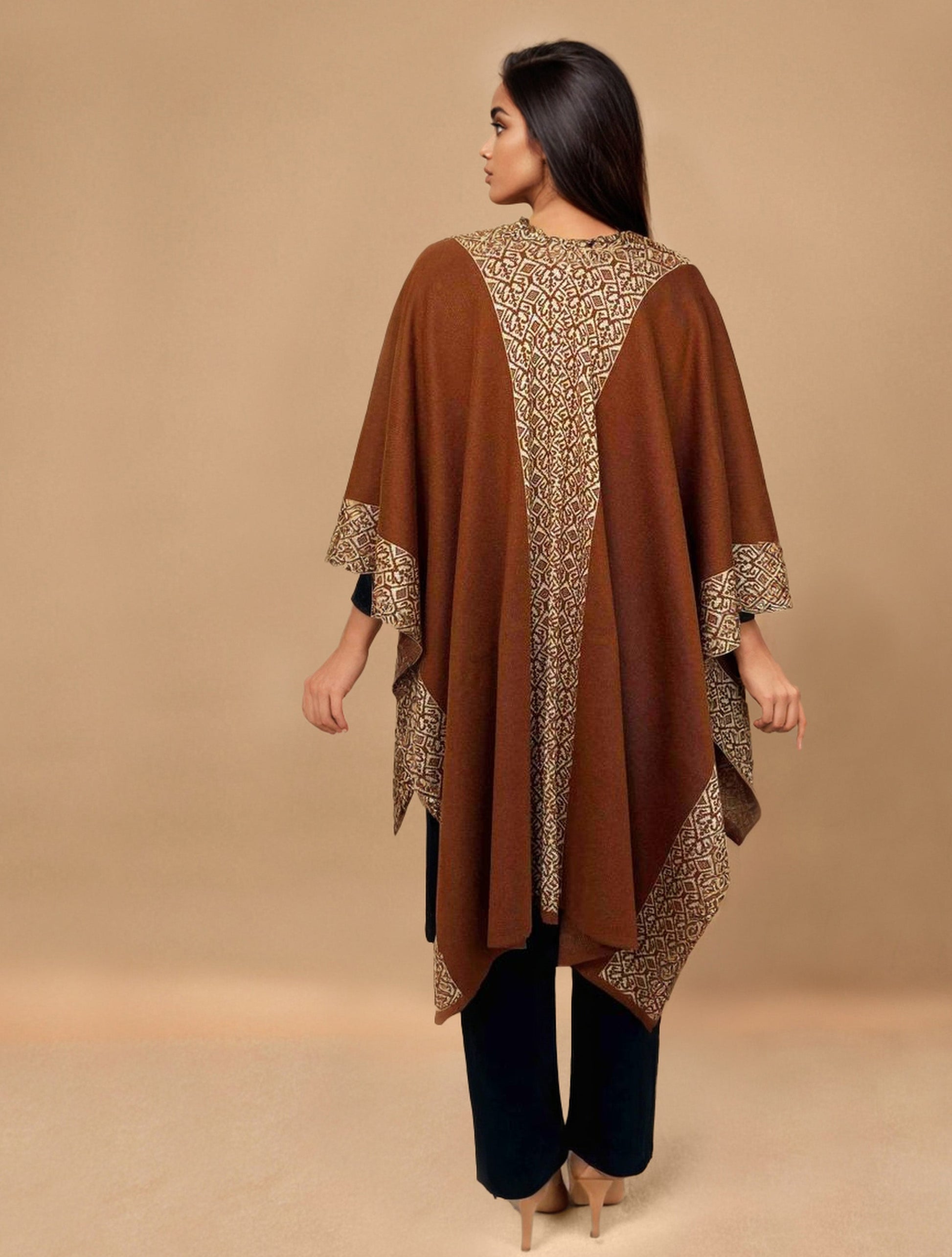 • Elevate your style with this brown woollen kaftan cape, it's an ideal blend of elegance and comfort.