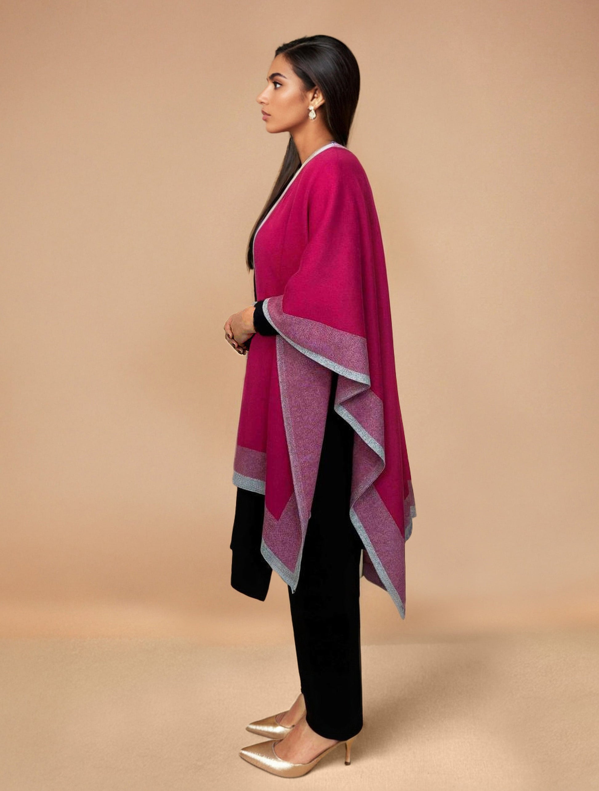 • Elevate your style with this pink woollen kaftan cape, it's an ideal blend of elegance and comfort.