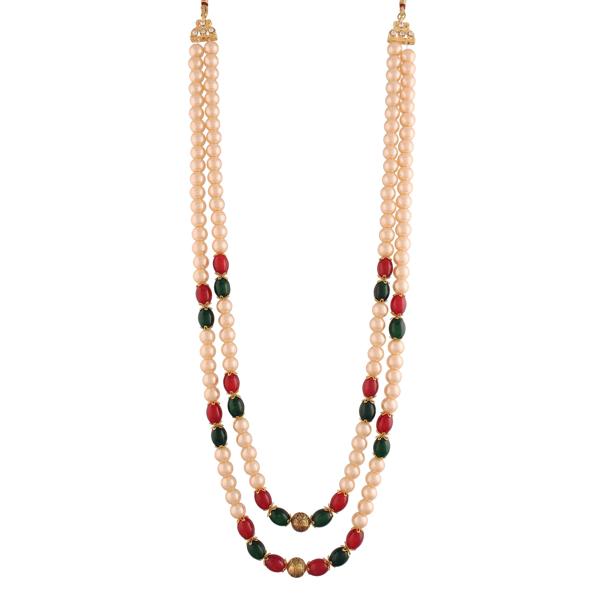 2 Layered Traditional Gold-Polished Dulha Moti Mala with Beads Maharaja Haar/Groom Long Necklace For Men - Wahe Jewels