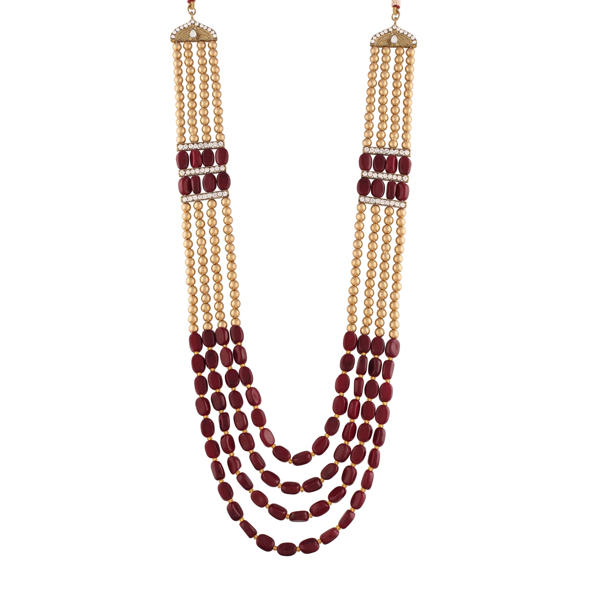 4 Layered Traditional Gold-Polished Dulha Moti Mala with Beads Maharaja Haar/Groom Necklace for Men - Wahe Jewels