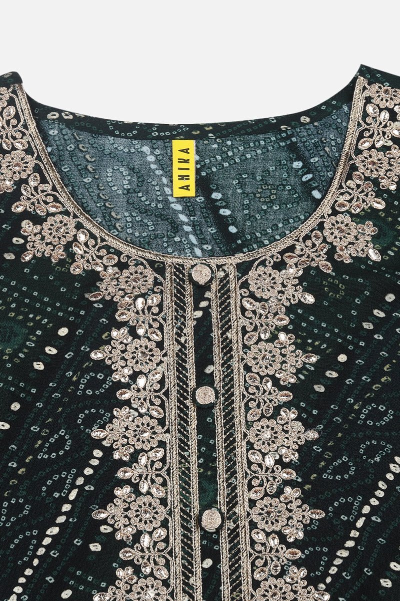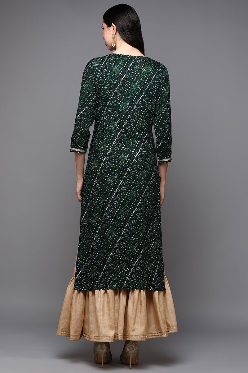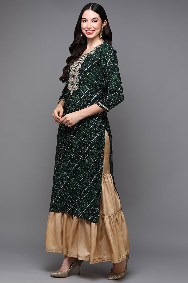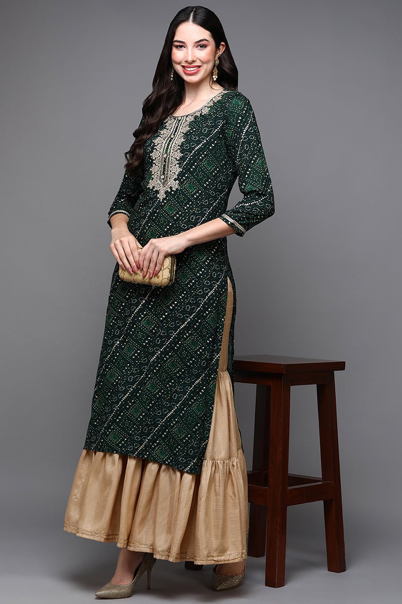 Ahika Green Viscose Rayon Bandhani Straight Kurta