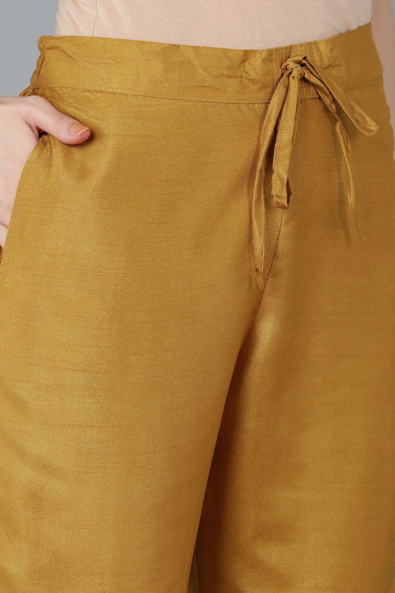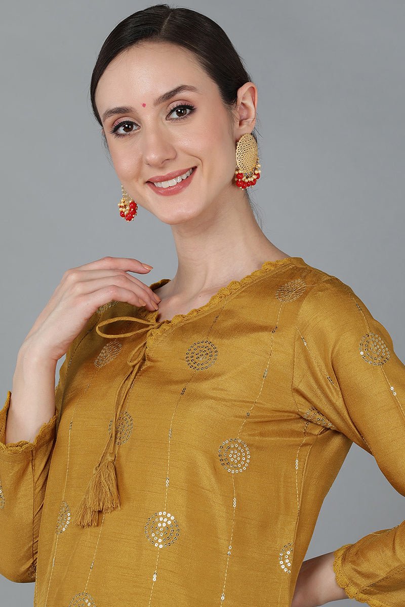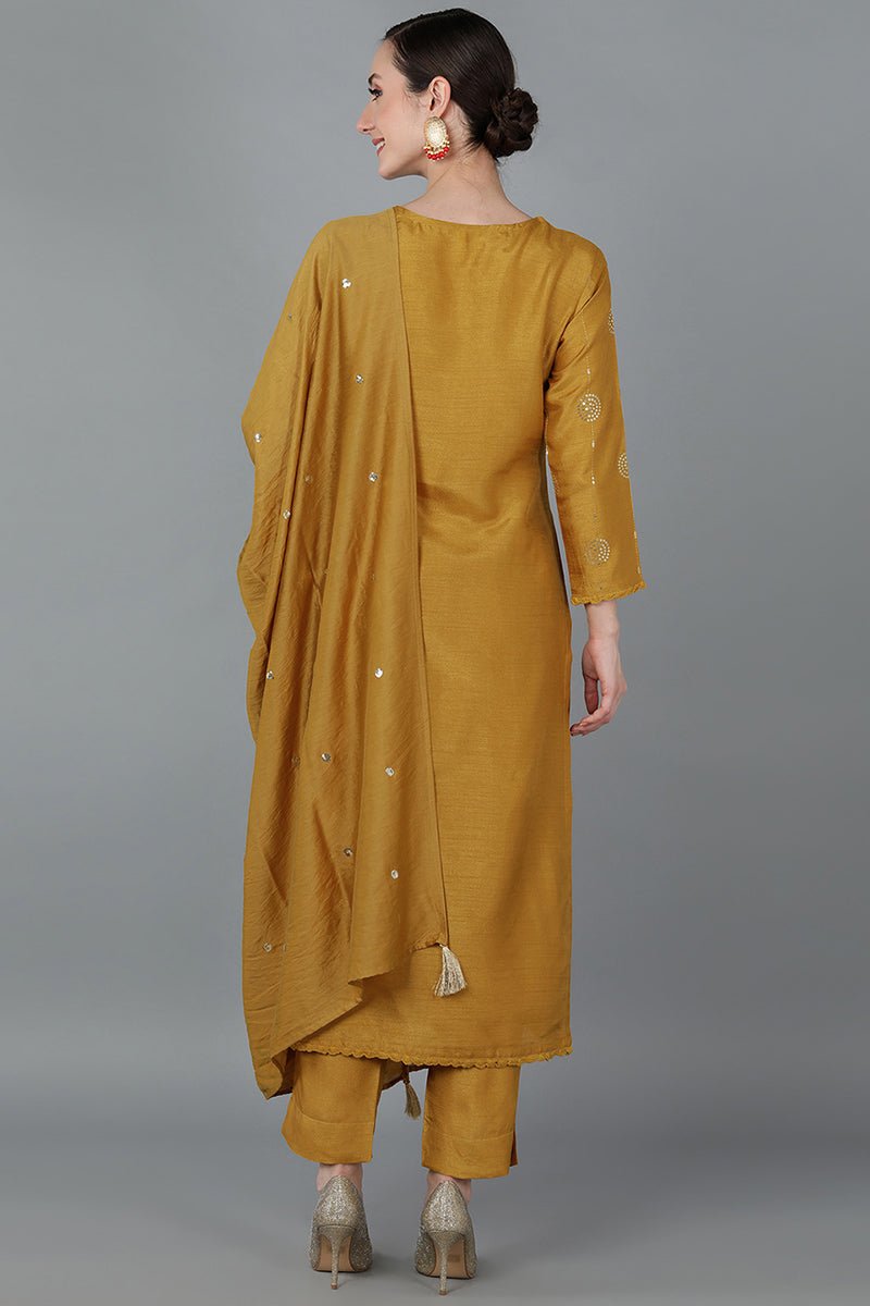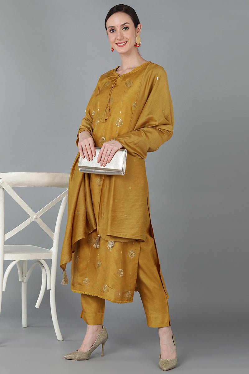 Ahika Mustard Silk Blend Ethnic Motifs Straight Suit Set