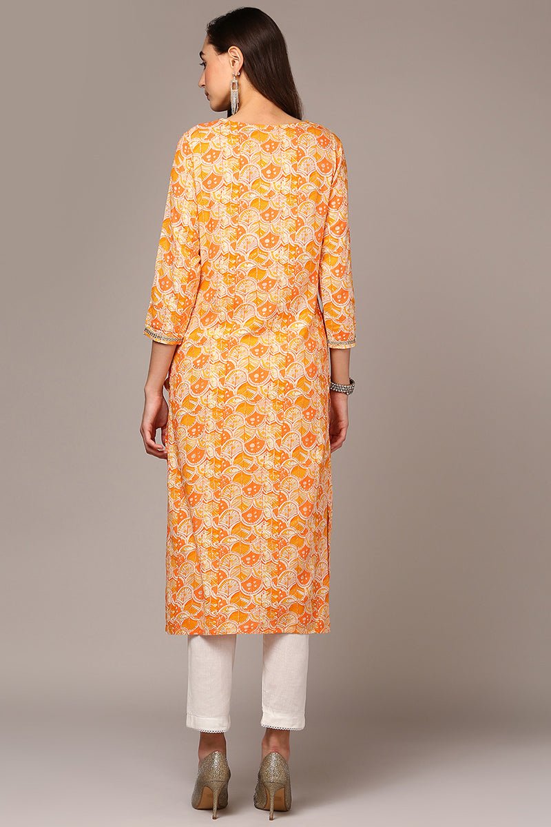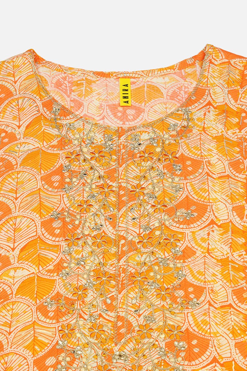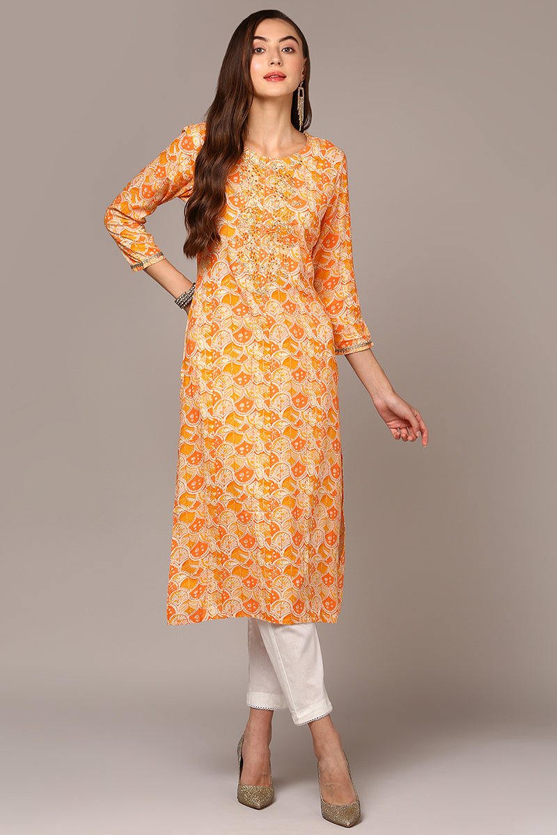Ahika Orange Viscose Rayon Embroidered Kurta