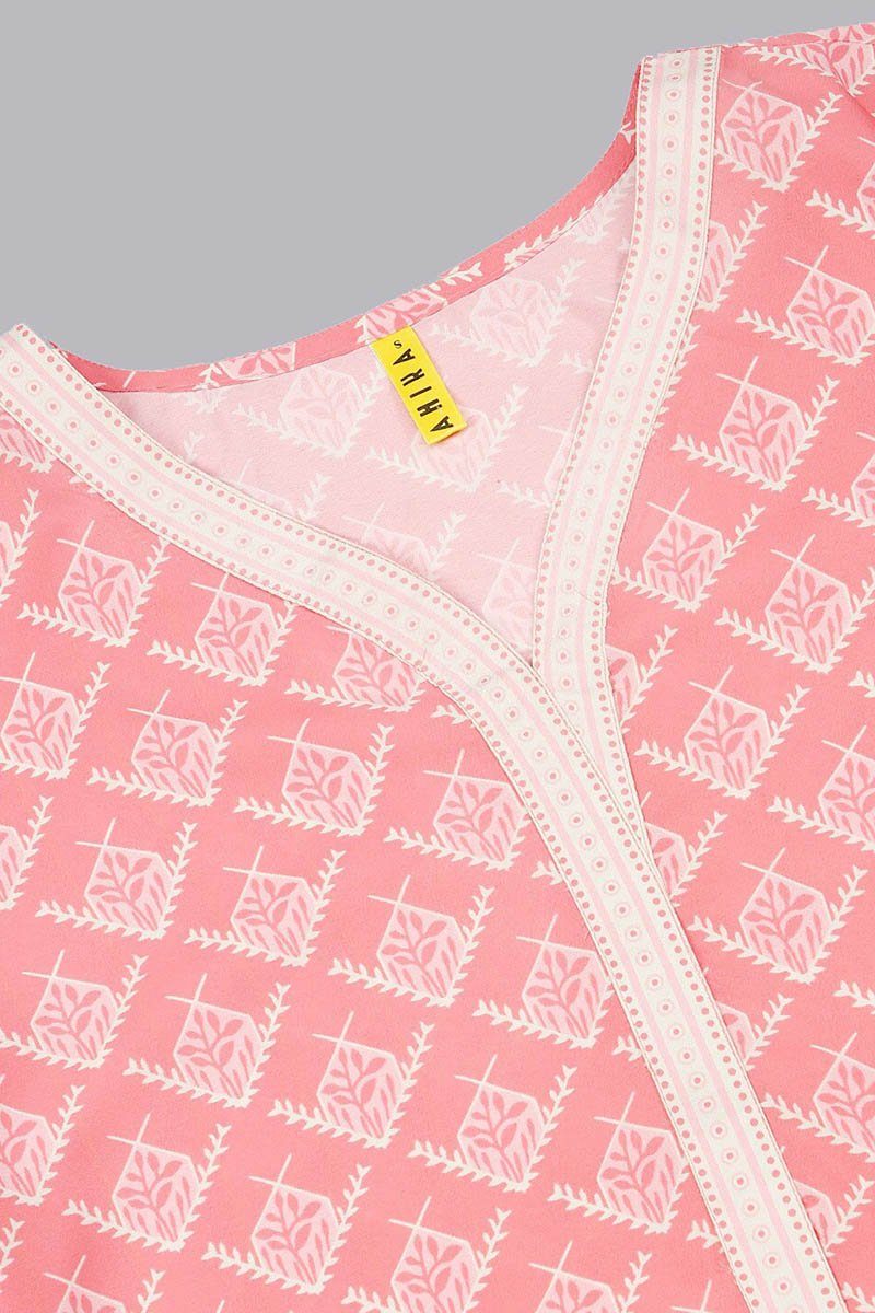 Ahika Peach Polyester Ethnic Motifs Straight Suit Set