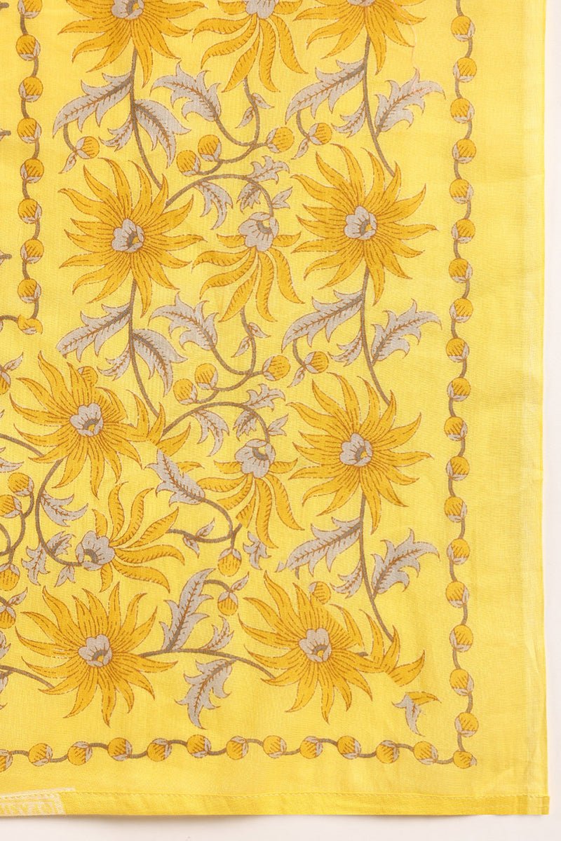Ahika Yellow Pure Cotton Floral Embroidered Anarkali Suit Set