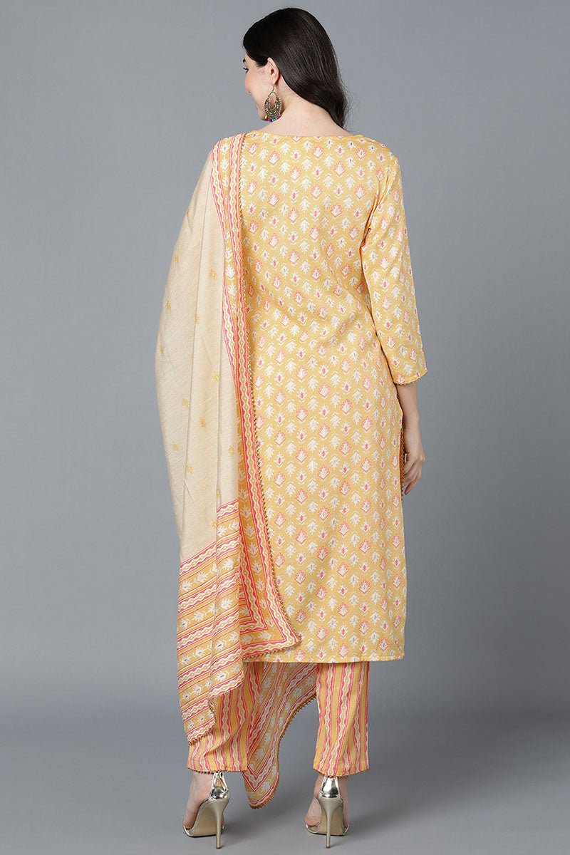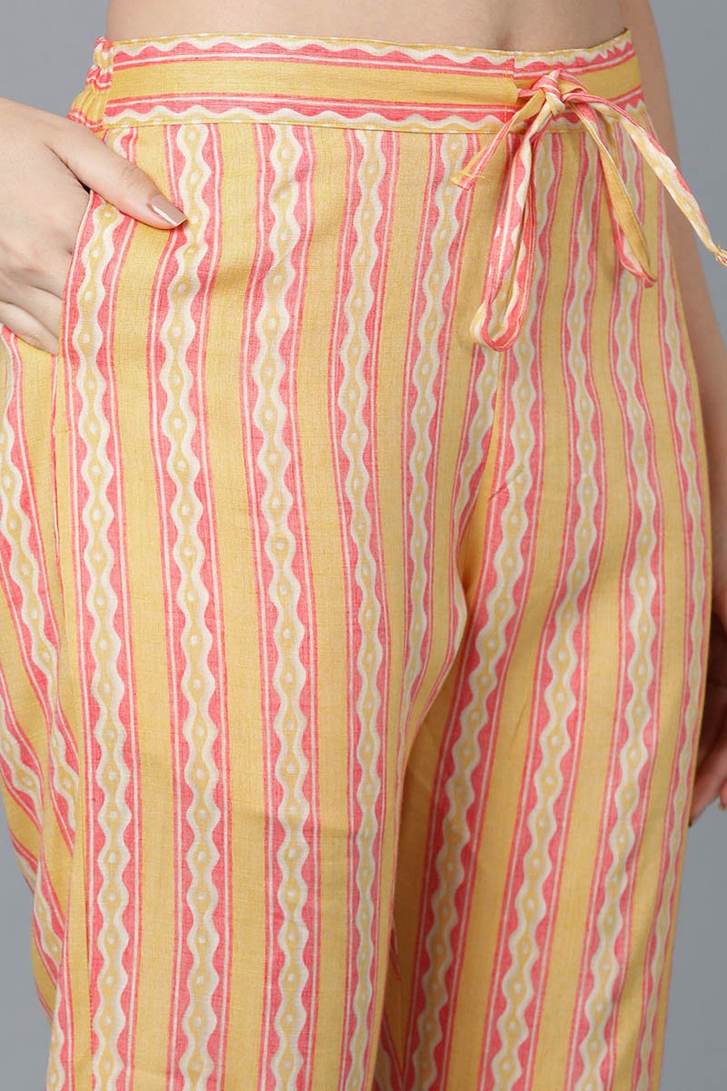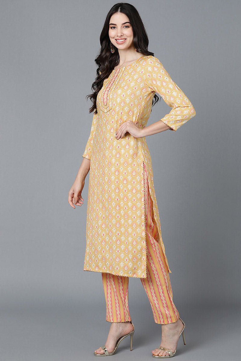 Ahika Yellow Pure Cotton Straight Suit Set