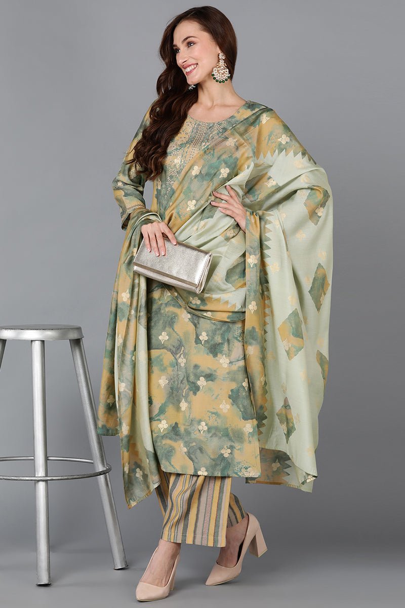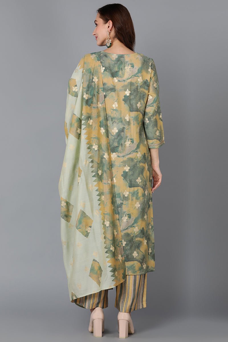 Ahika Yellow Silk Blend Straight Kurta Palazzo With Dupatta