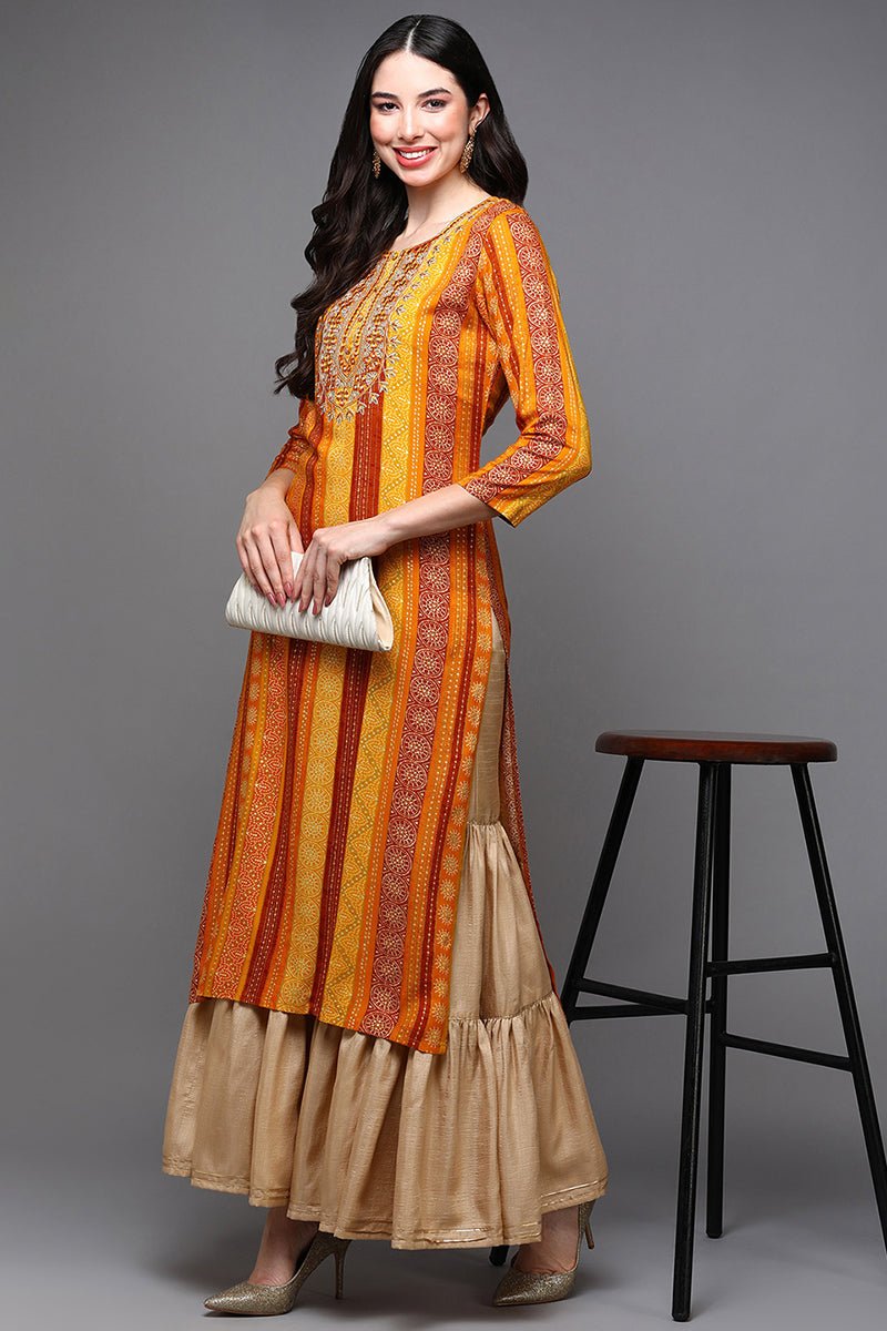 Ahika Yellow Viscose Rayon Ethnic Motifs Straight Kurta