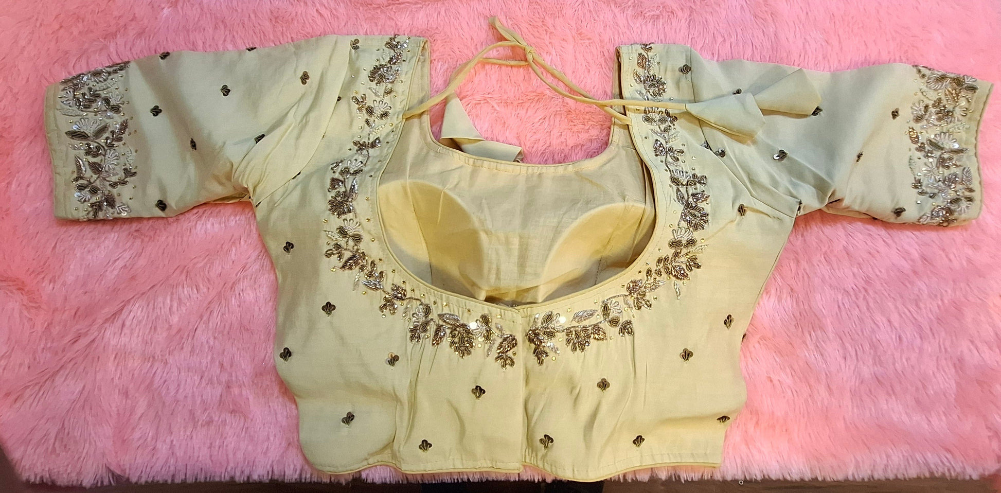 Kia Fashions Beige Cotton Silk Hand Embroidered Readymade Blouse