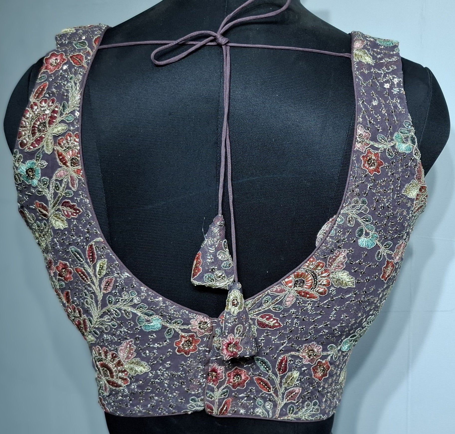 Kia Fashions Dusty Mauve Georgette Multi Color Emb & Sqn Readymade Blouse