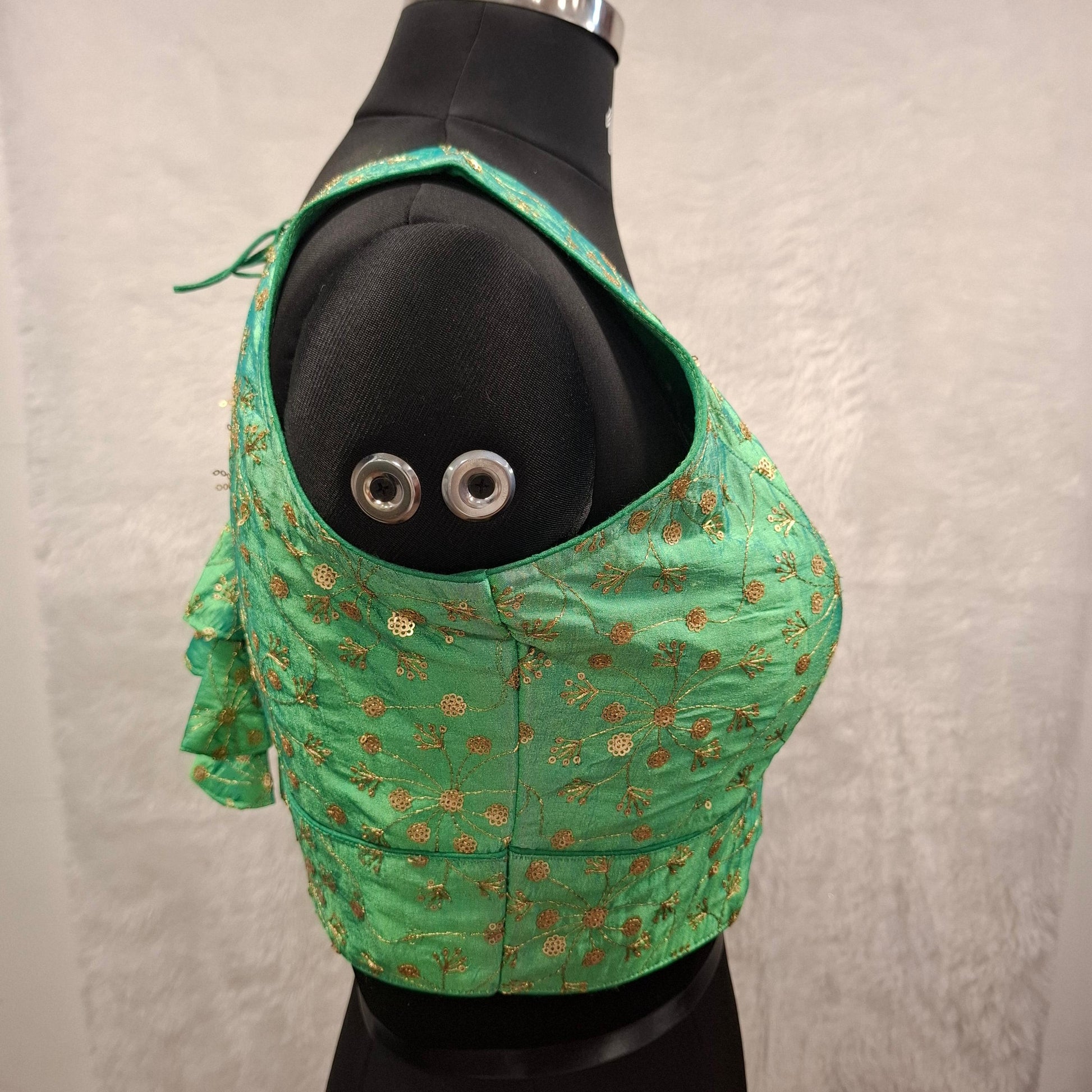 Kia Fashions Green Twin Tone Golden All Over Sequins Readymade Blouse