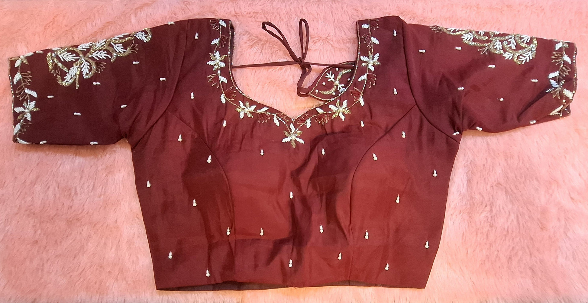 Kia Fashions Maroon Cotton Silk Hand Embroidered Readymade Blouse