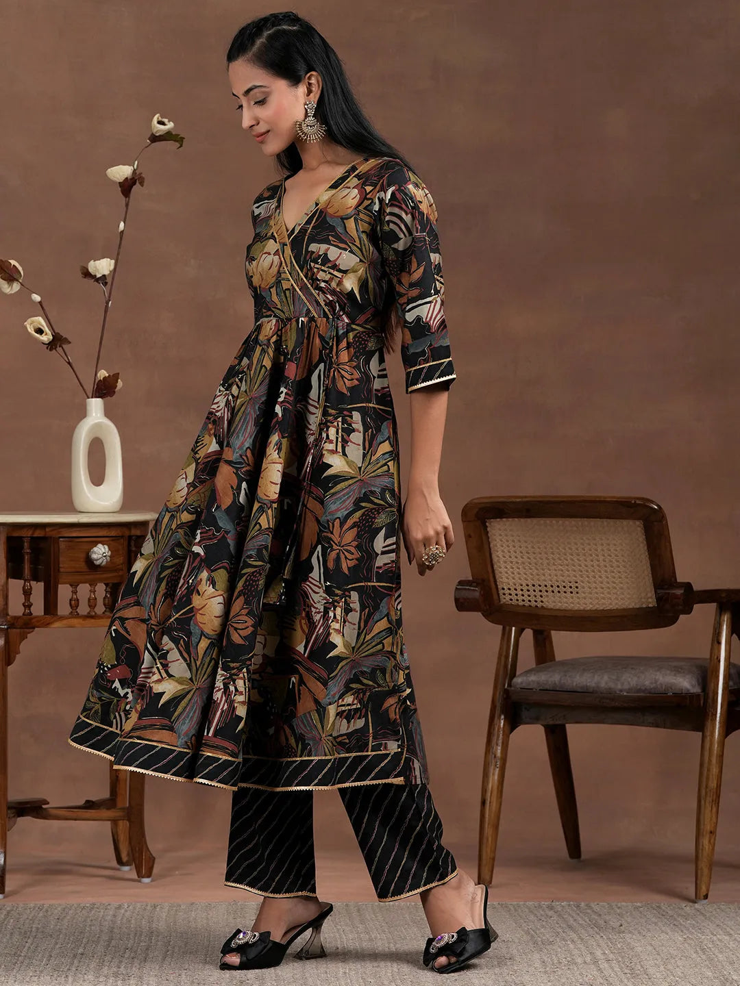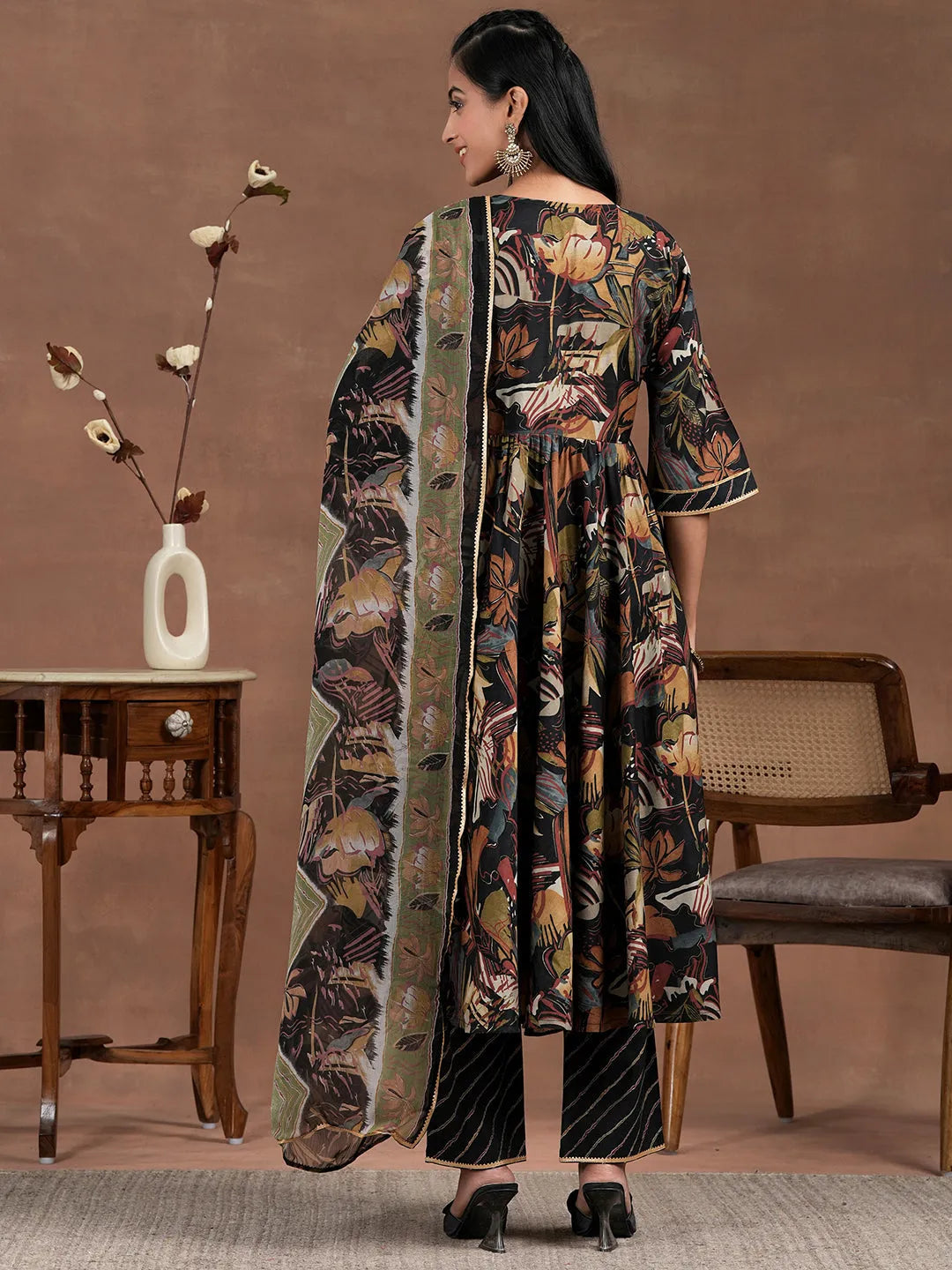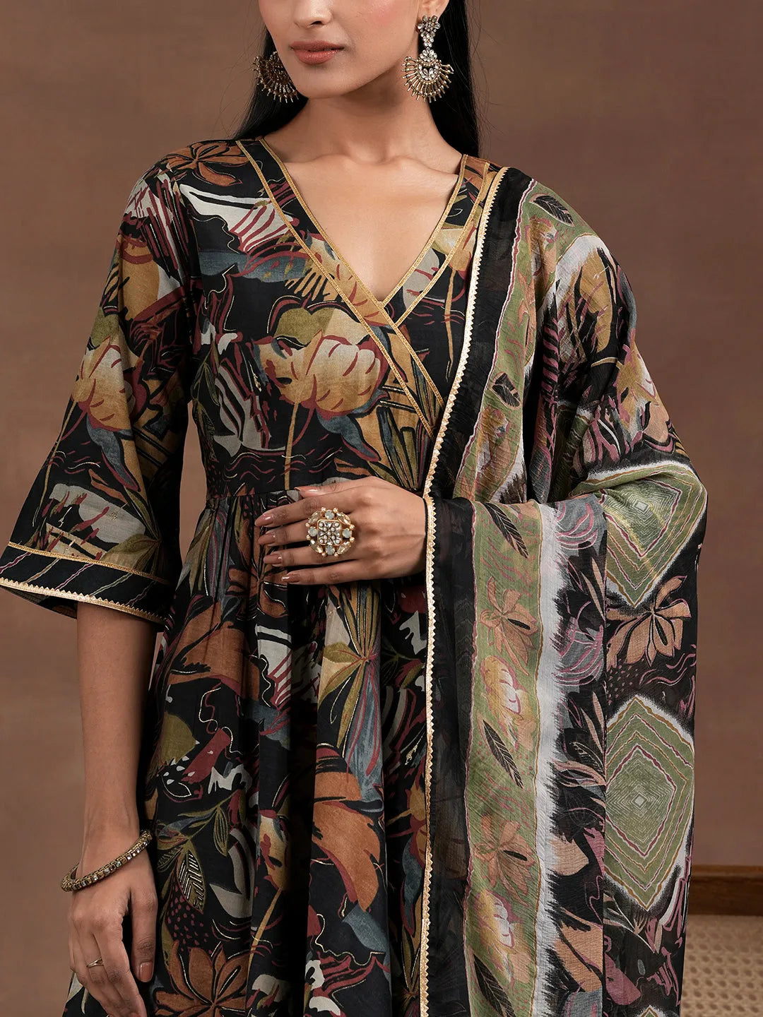 Libas Black Printed Silk Blend Anarkali Suit With Dupatta