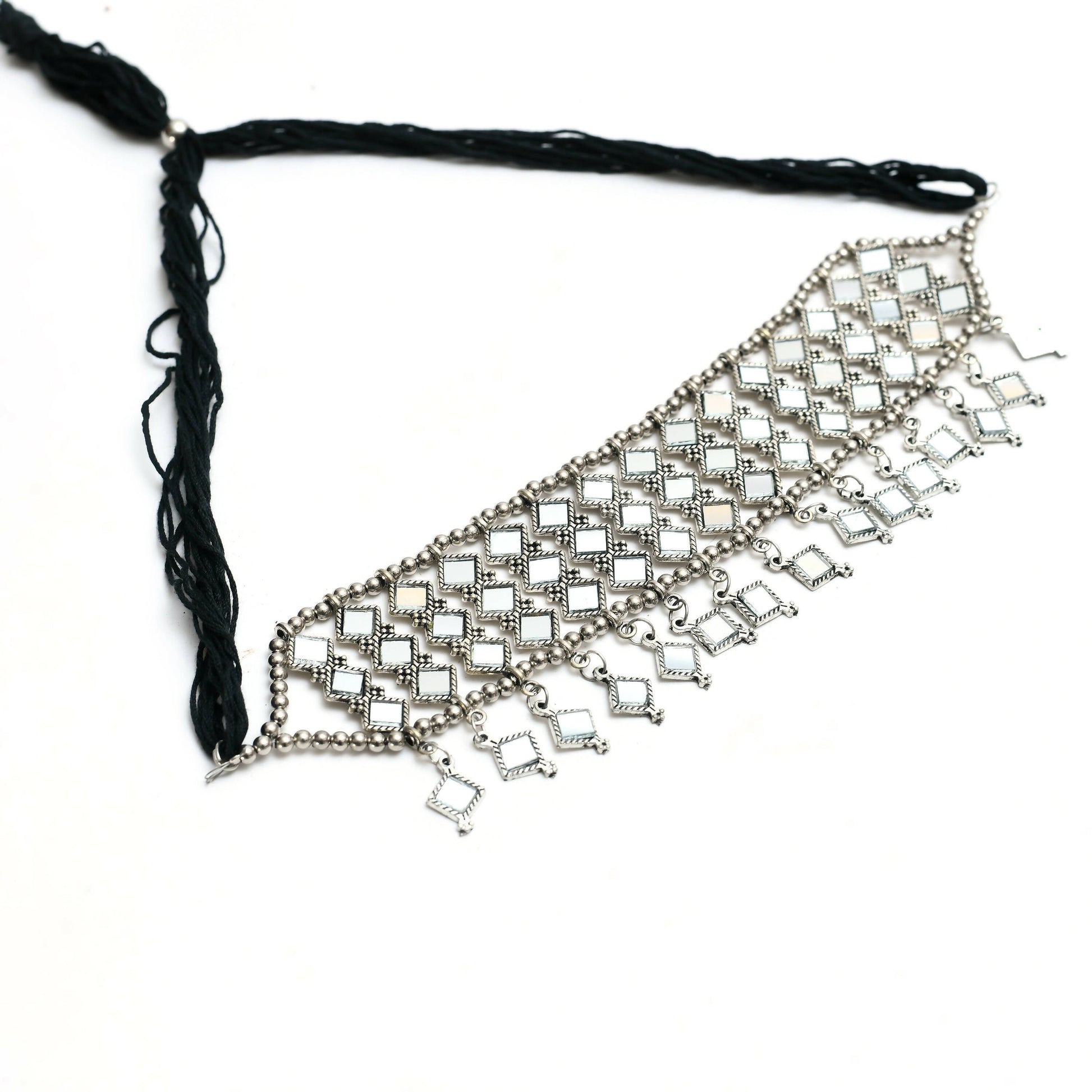 Mominos Fashion Johar Kamal Oxidised Silver-Plated Alloy Finish Mirror Choker For Women