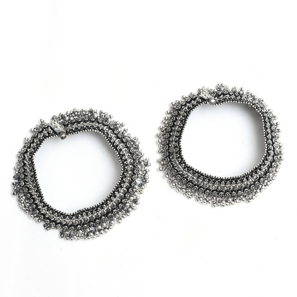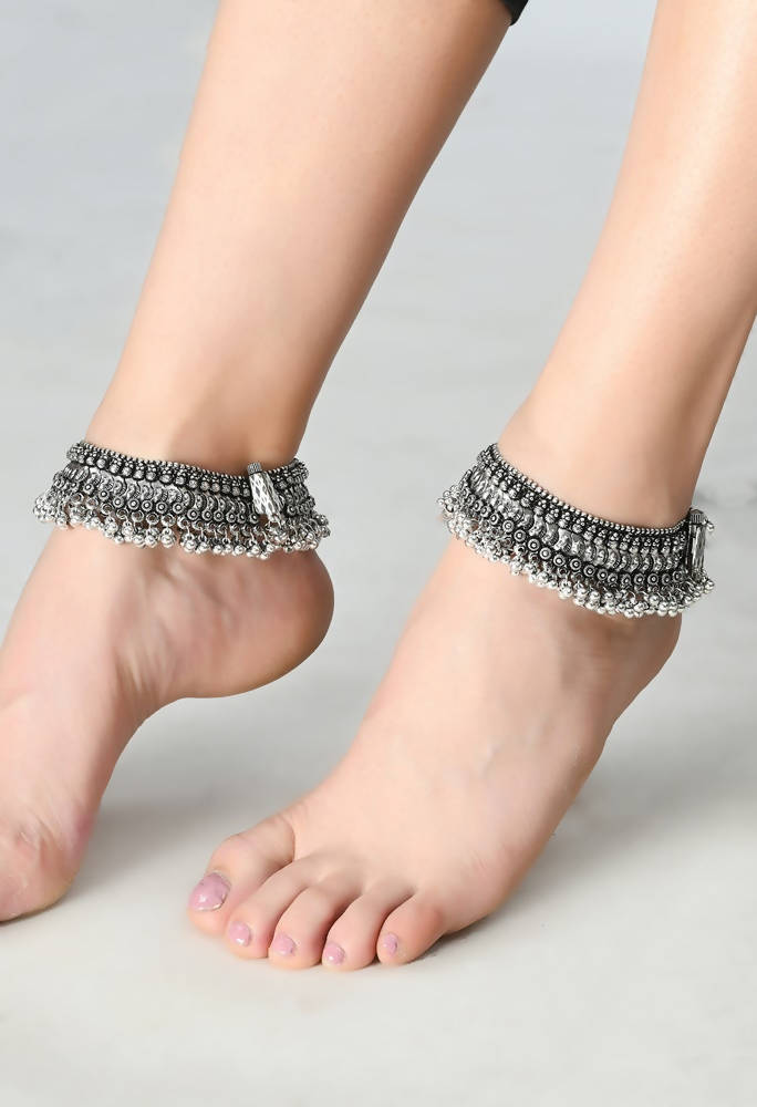 Mominos Fashion Kamal Johar Oxidised Silver Heavy Design Anklets