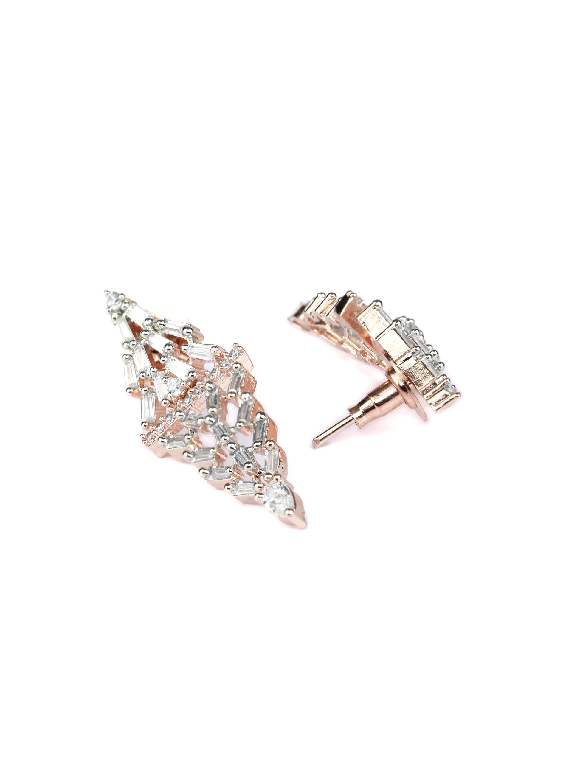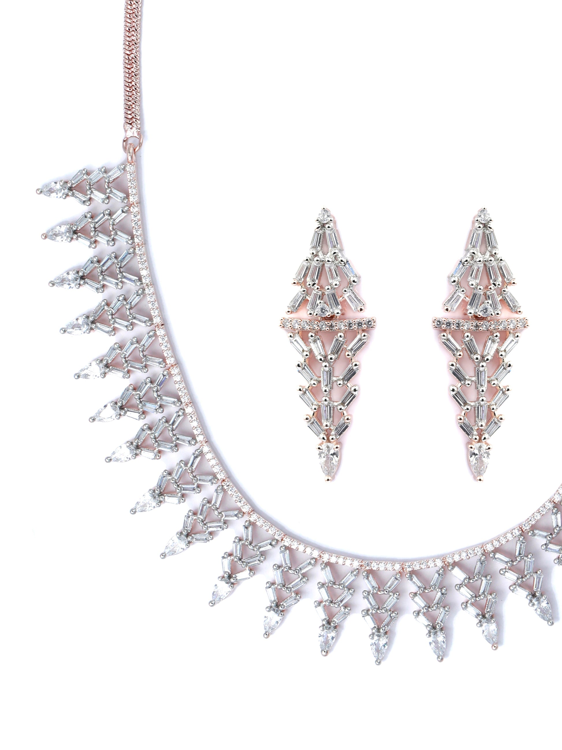 Priyaasi Women Elegant Floral American Diamond Rose Gold Jewellery Set