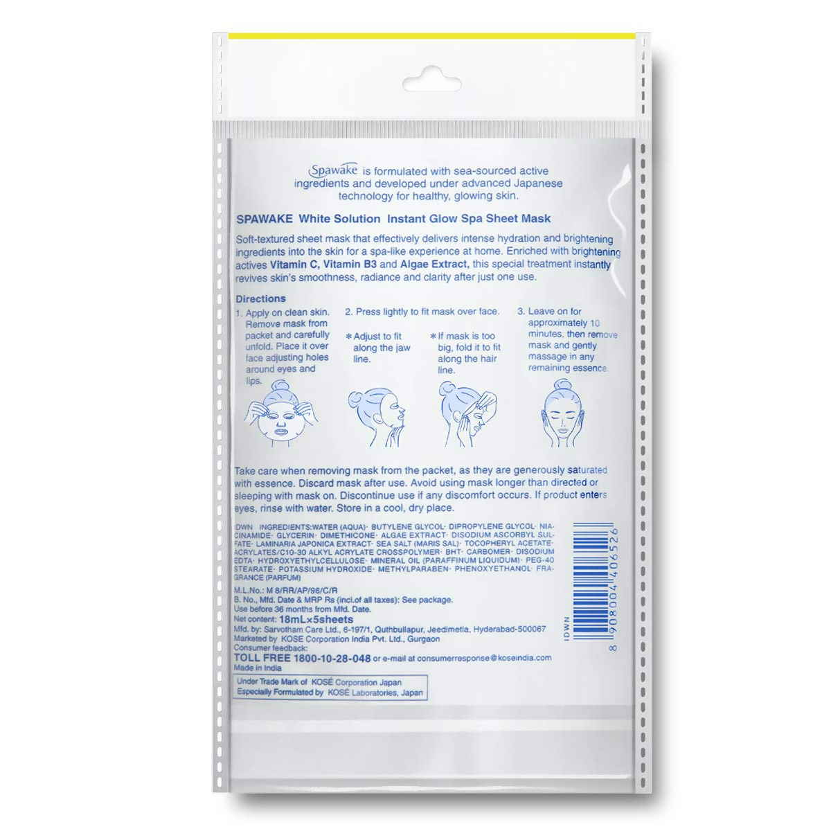 Spawake Face Sheet Mask Whitening Instant Glow for Hydrating & Radiance