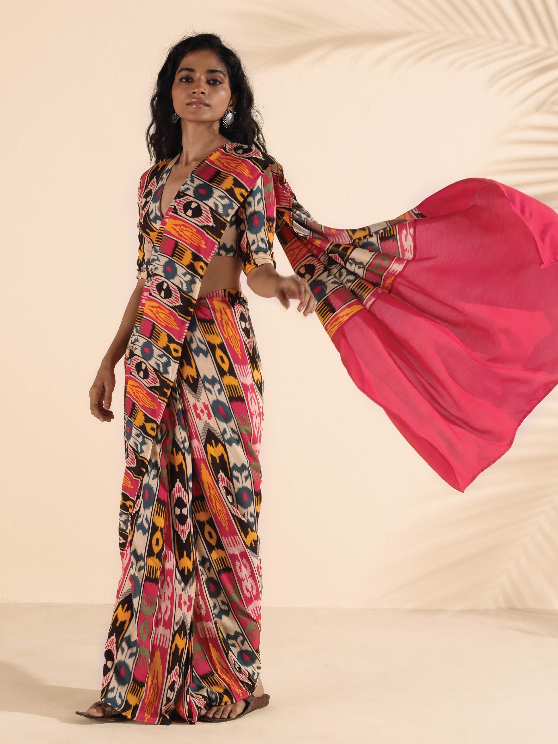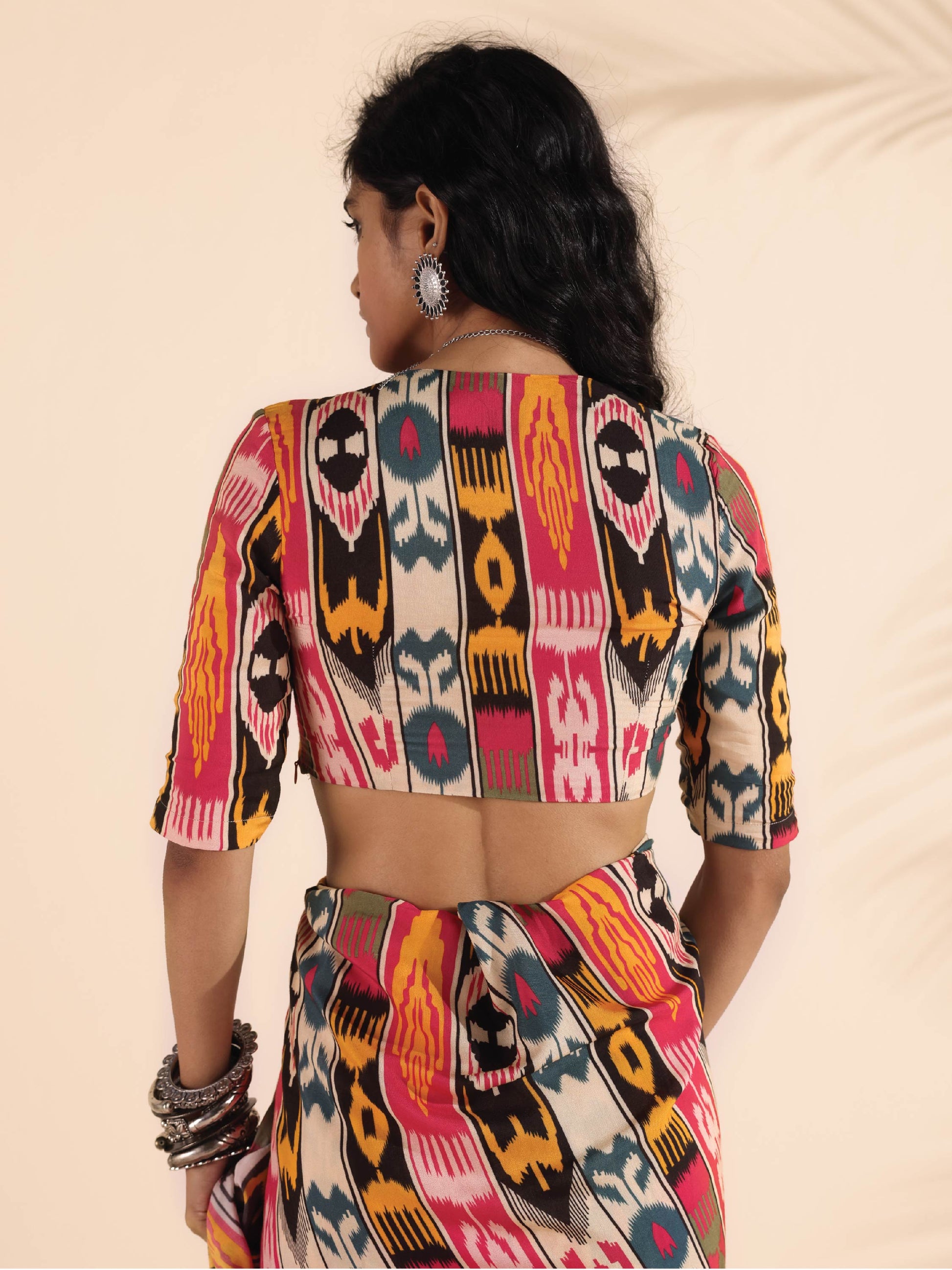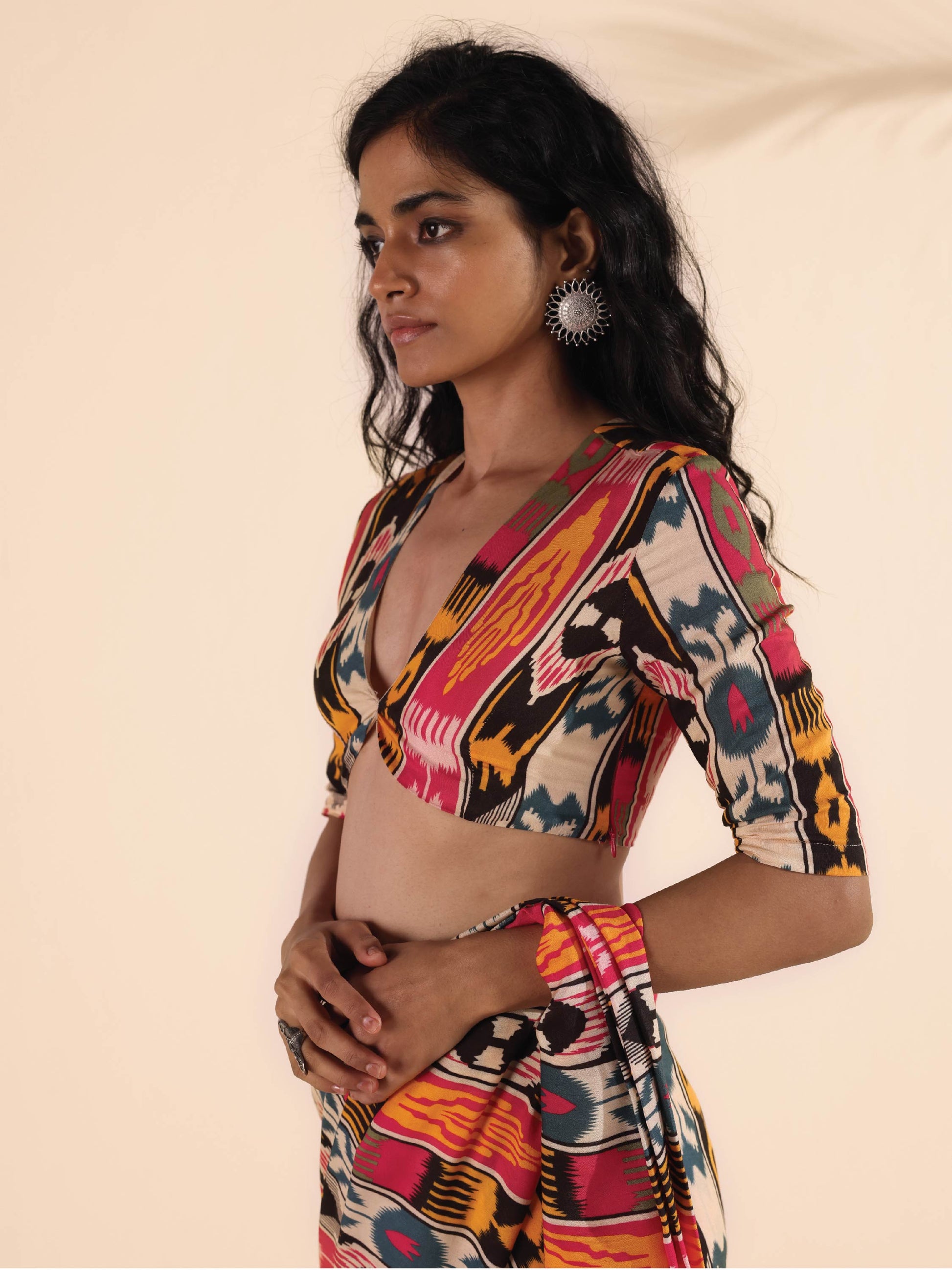 trueBrowns Cola Muslin Ikat Deep V-Neck Blouse