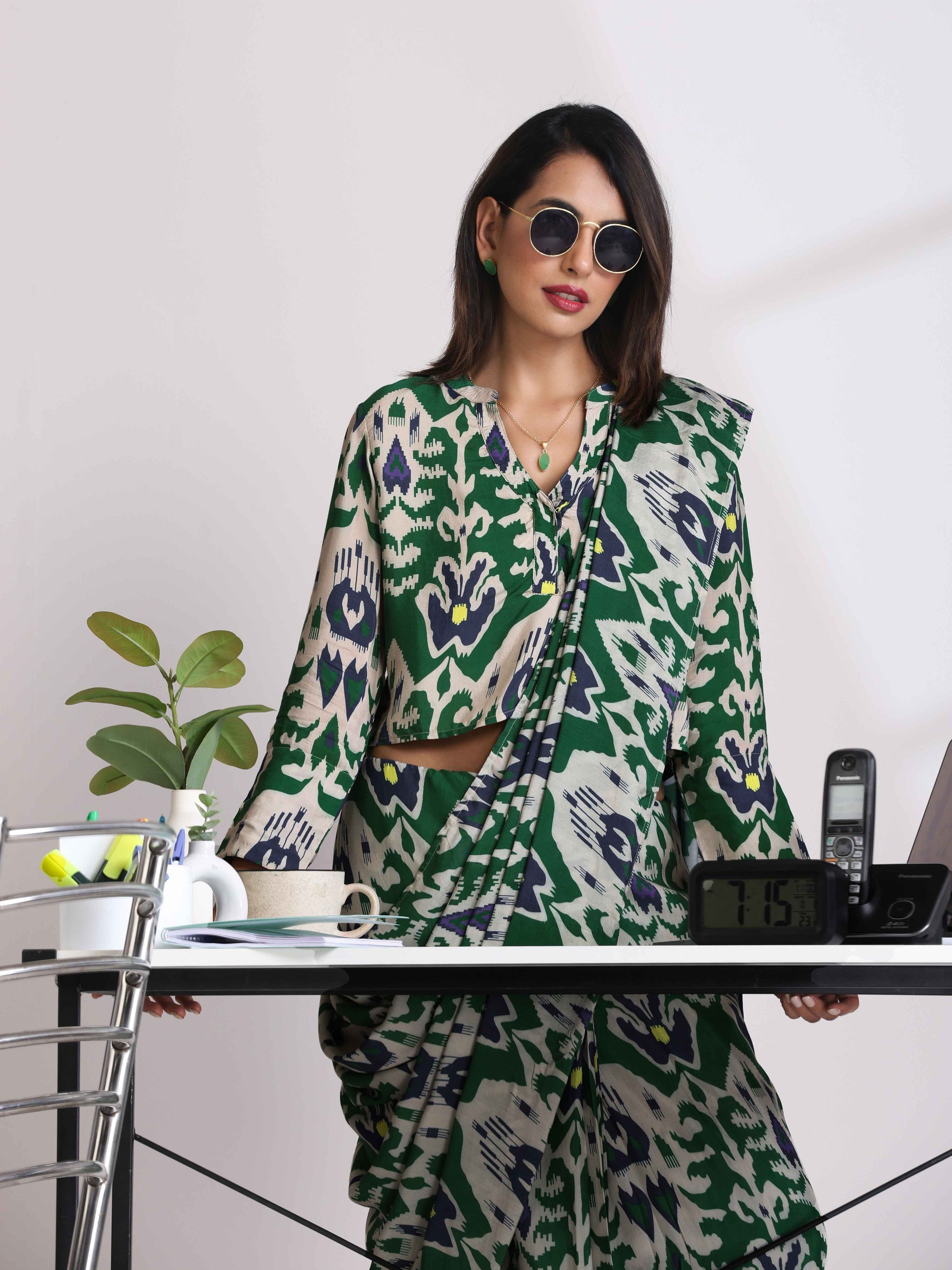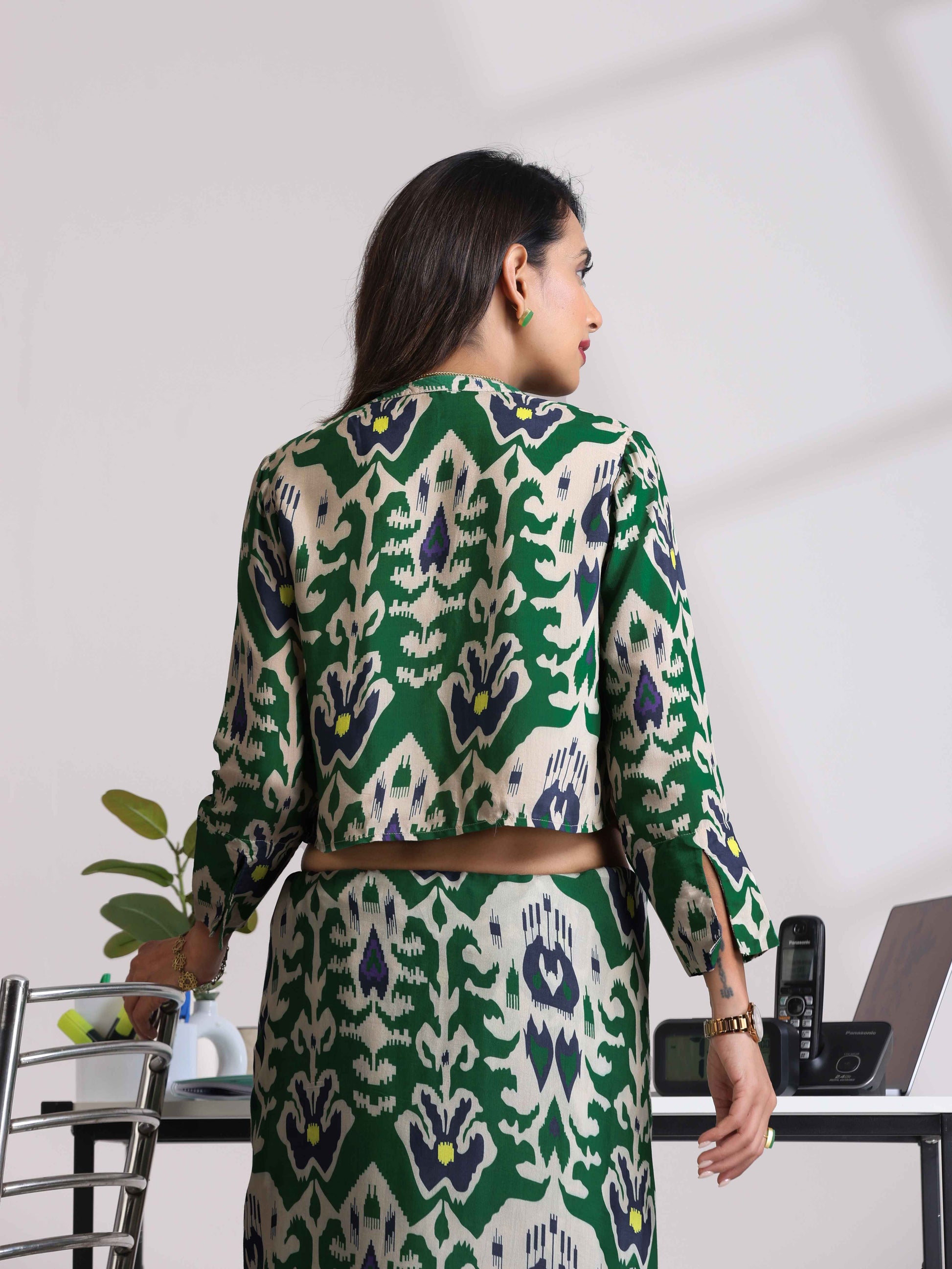 trueBrowns Green Muslin Ikat Shirt Blouse